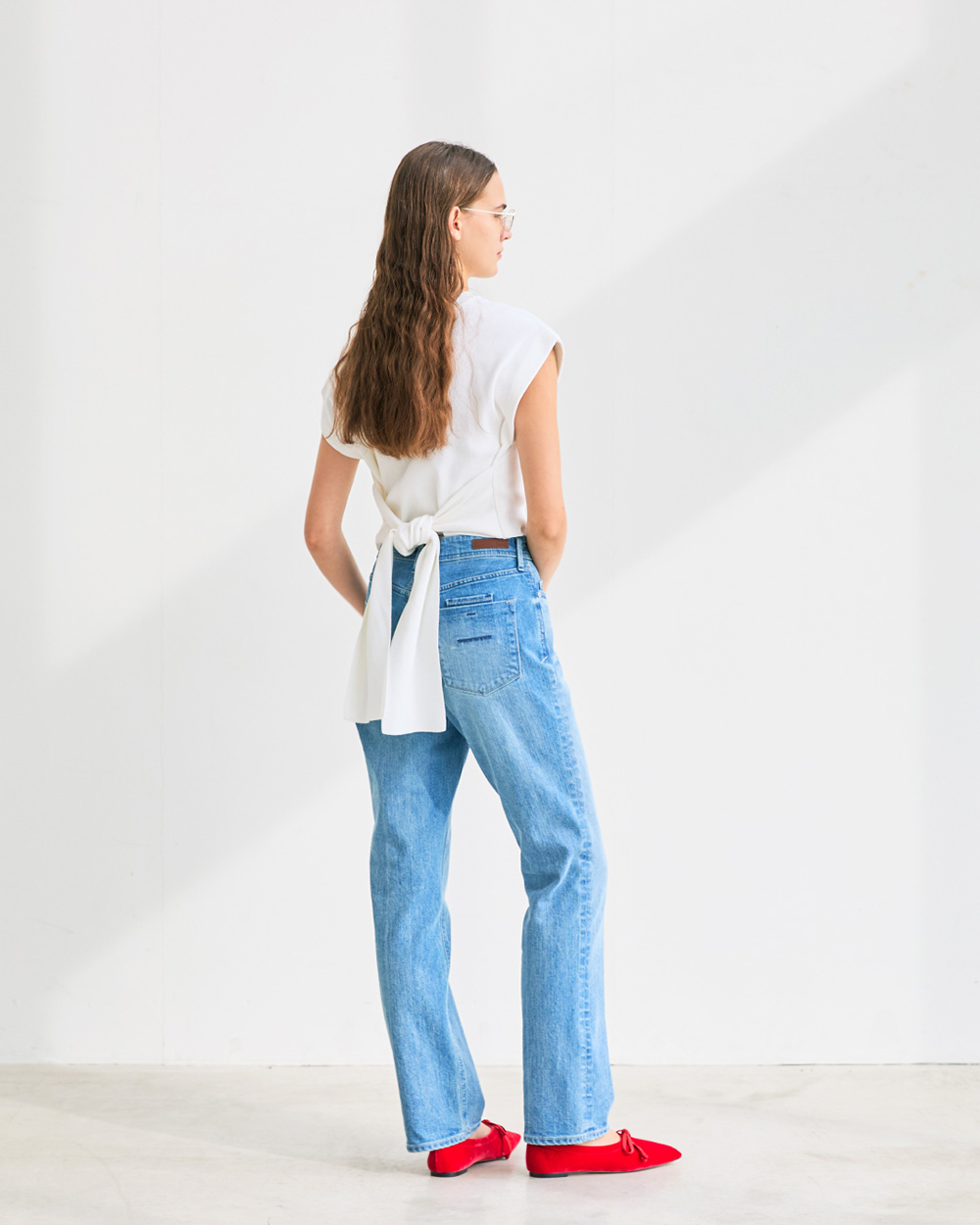 - 腰まわりは直線的ですっきりと見せながら、ウエストはほどよくフィット。快適な穿き心地と美しいバランスを両立しています。