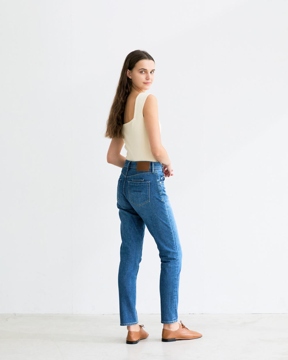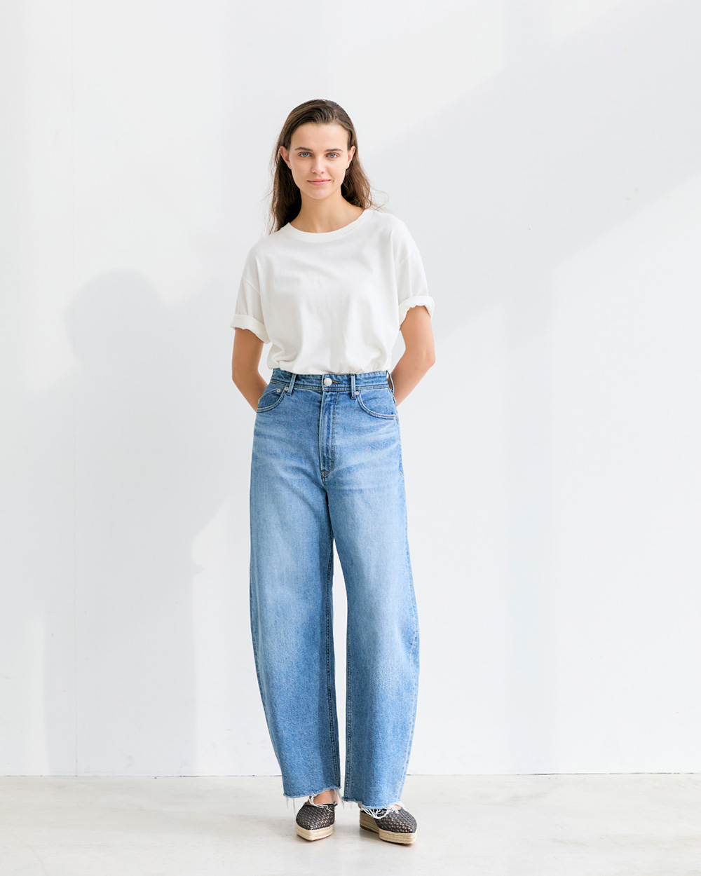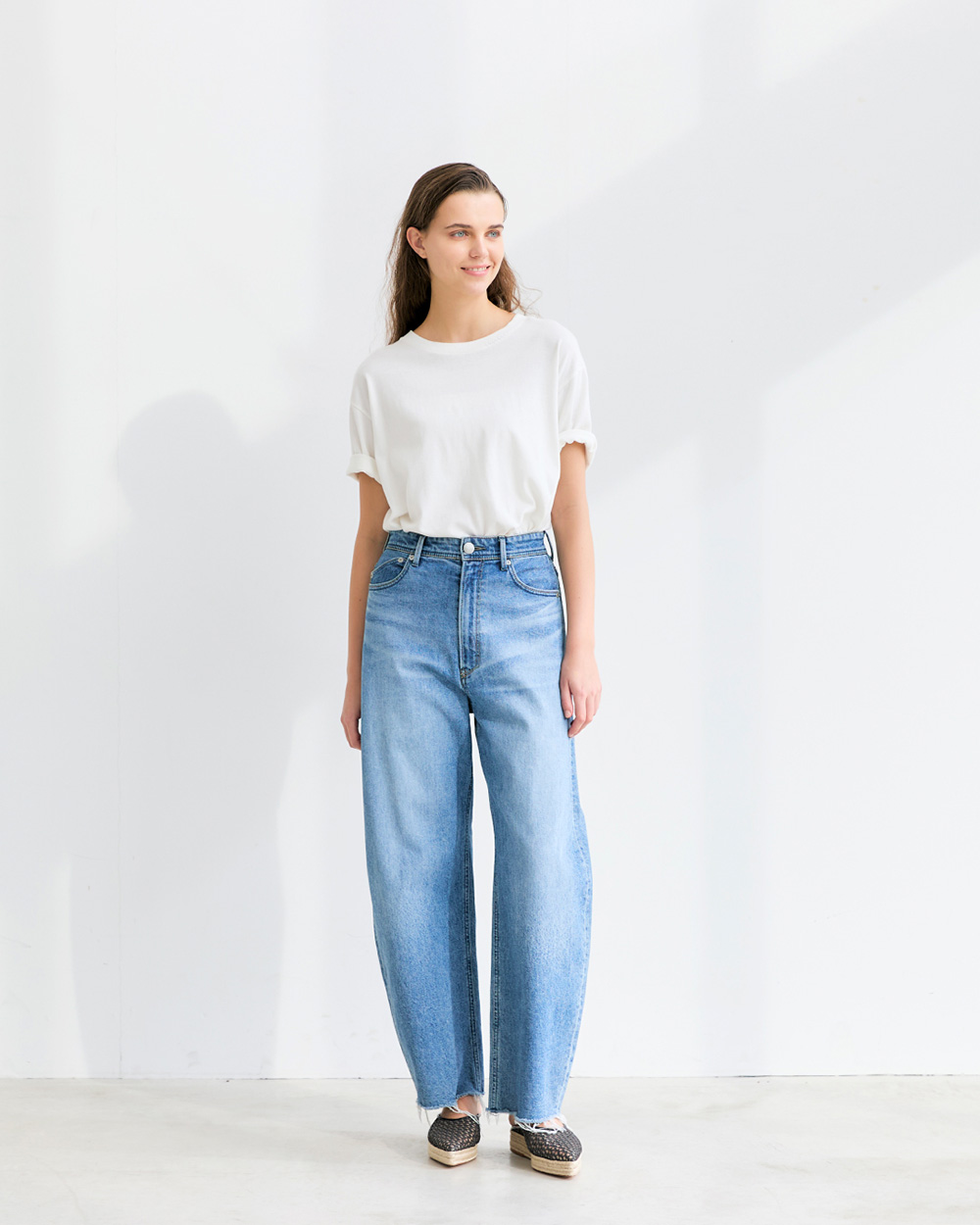 - 程よくゆとりを持たせたストレート。ラフさがありながら、女性が穿いてきれいに見えるバランスです。