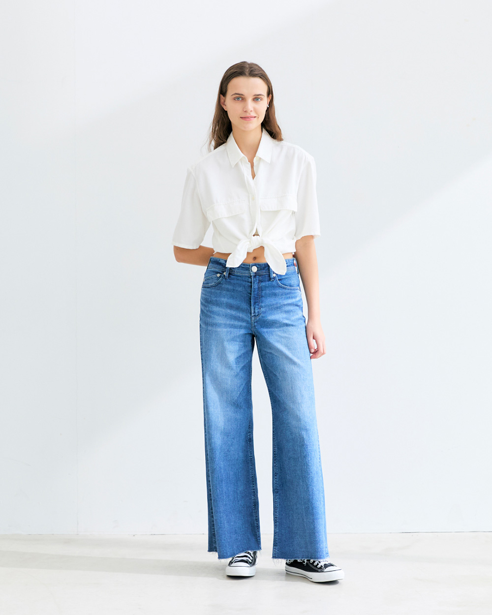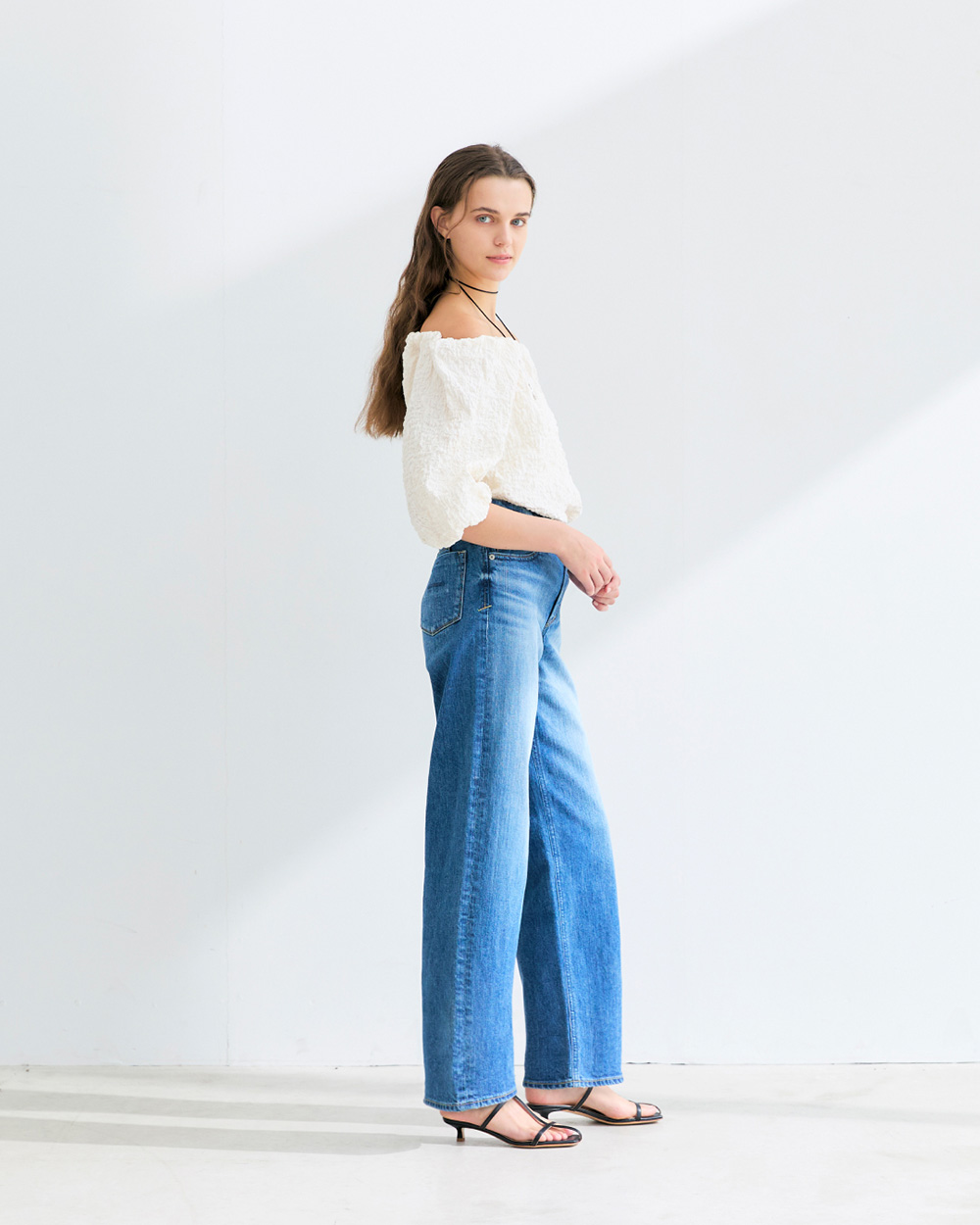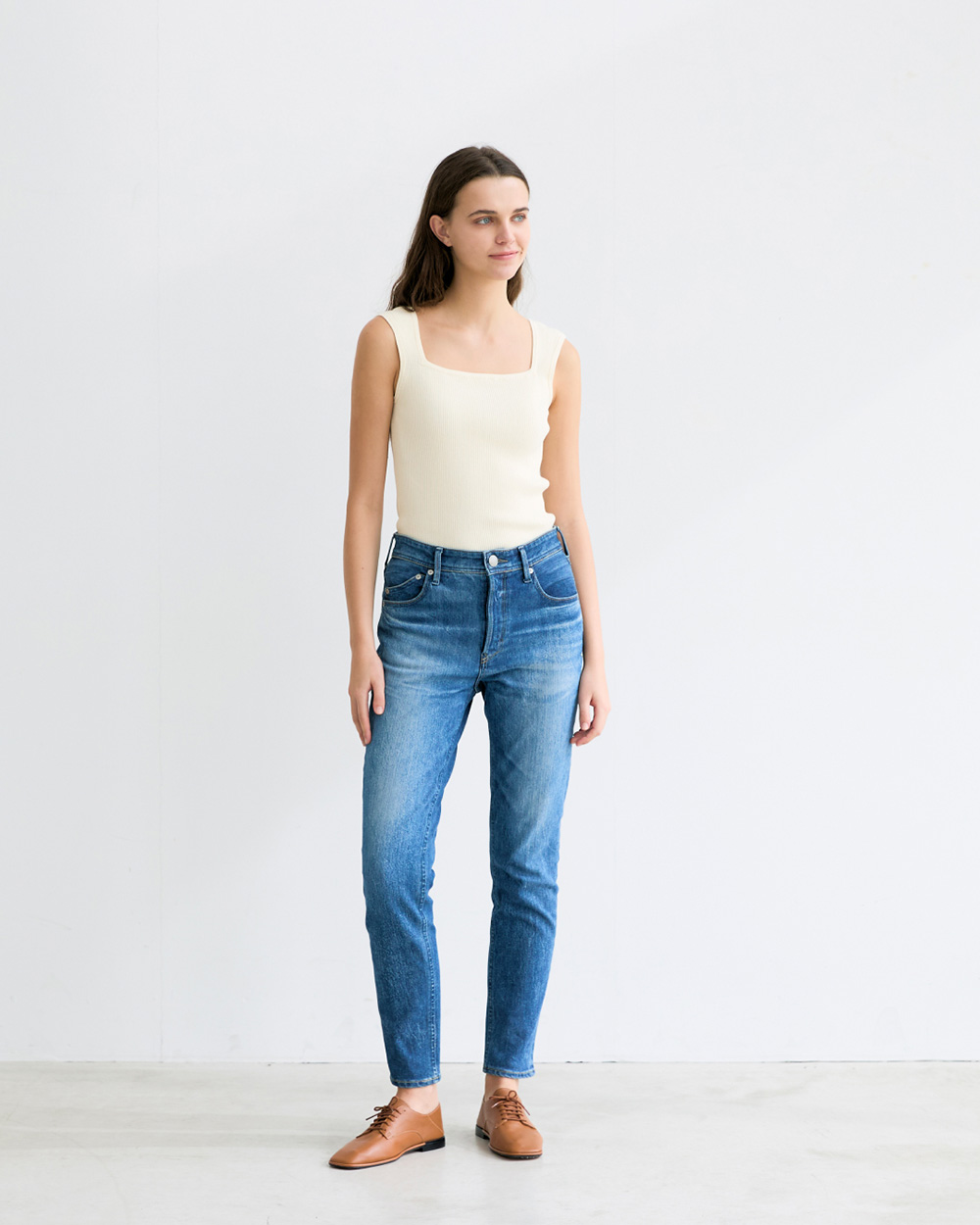 - 程よくゆとりを持たせたストレート。ラフさがありながら、女性が穿いてきれいに見えるバランスです。