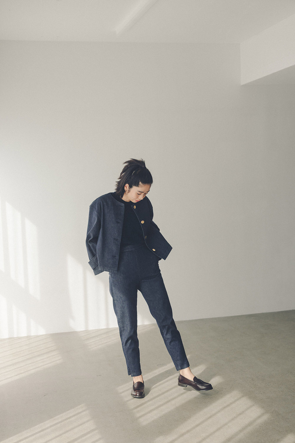 カジュアルさと上品さを備えたデニムジャケット、