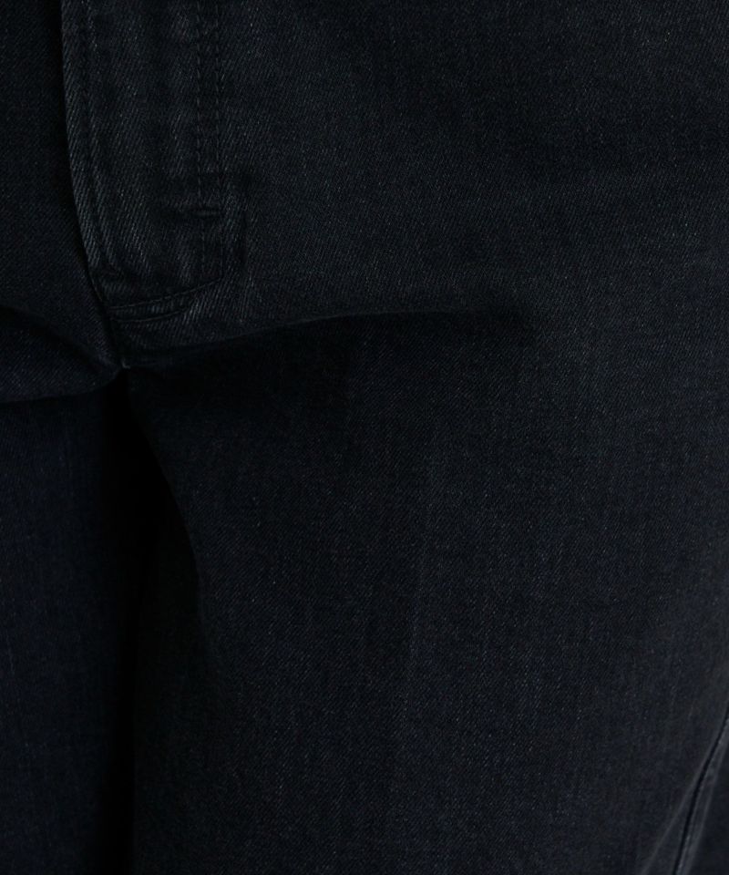 ホールド感のあるストレッチ性と、肉感を拾いすぎないハリ感が特徴のブラックデニム。スタイルを美しくキープしてくれながらも、締め付けすぎず動きやすい穿き心地抜群の生地です。