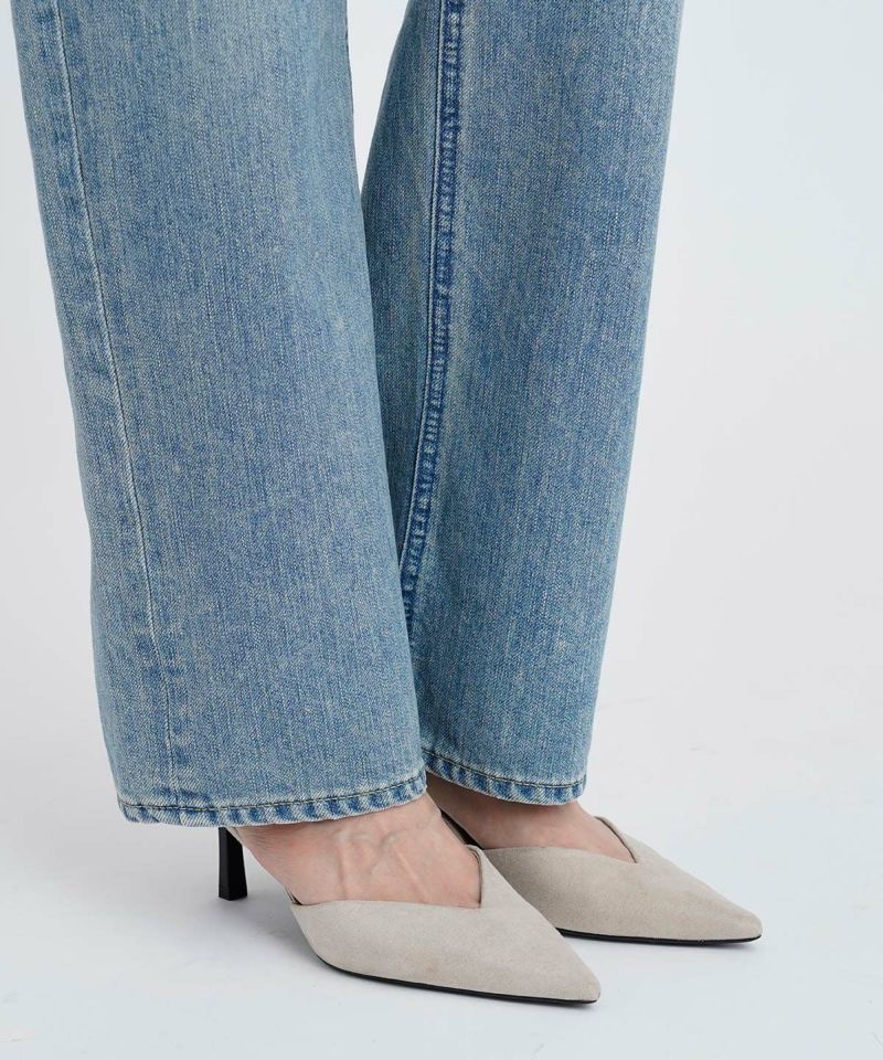 深さがある股上にゆるっとしたストレートが特徴のLEA。ゆとりのあるストレートは野暮ったくなりがちですが、LEAはパターンにこだわることで美脚に、そして脚長に見せてくれるYANUKらしいゆるストレートデニムです。