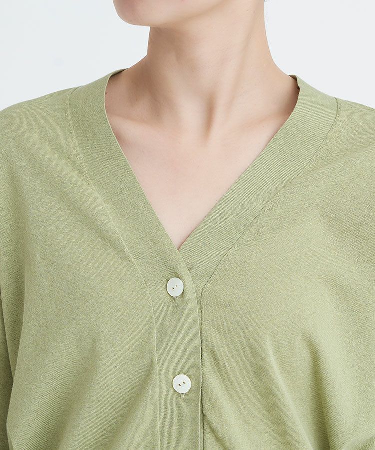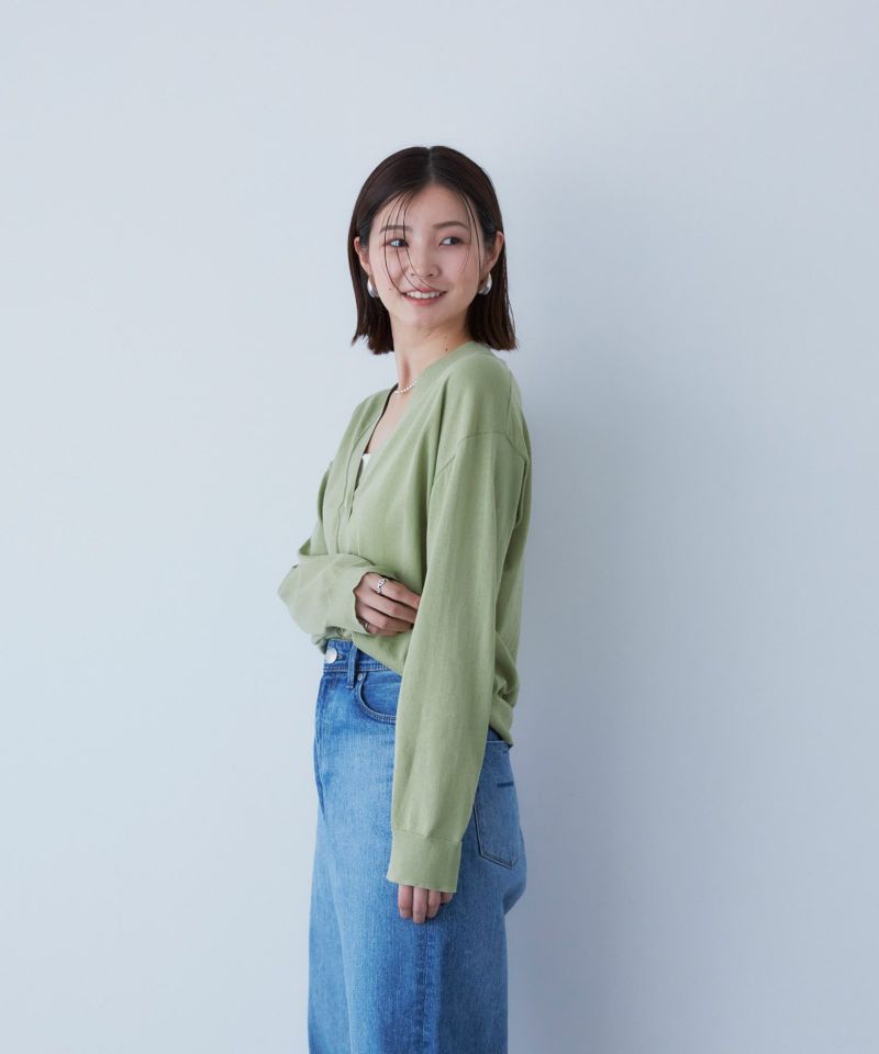 軽やかに羽織れるニットカーディガン。さらりとした肌触りが特徴で冷え込みが気になる朝晩や、室内の冷え対策、秋の日差しよけなど様々なシチュエーションで活躍する1枚。ほどよいゆとり感のシルエットと短めに設定された丈感で、スタイリングのバランスが取りやすいよう仕上げています。