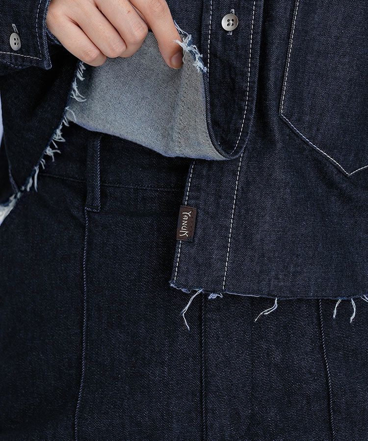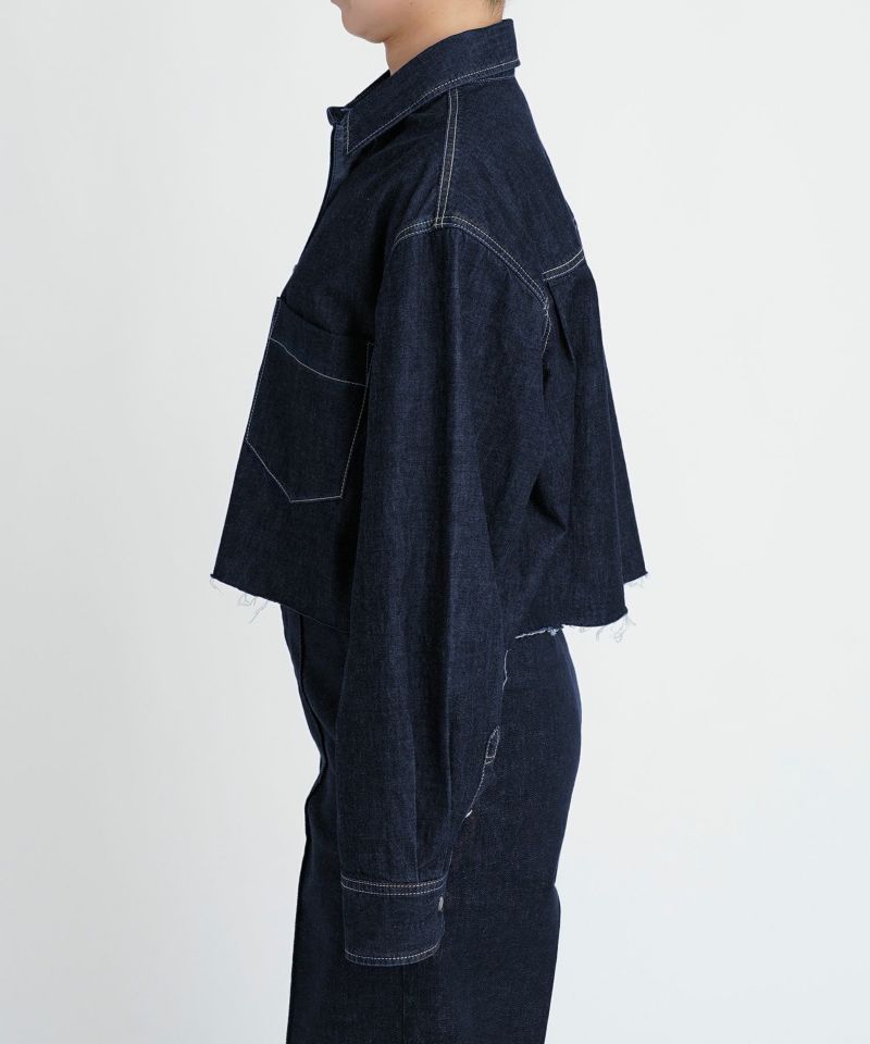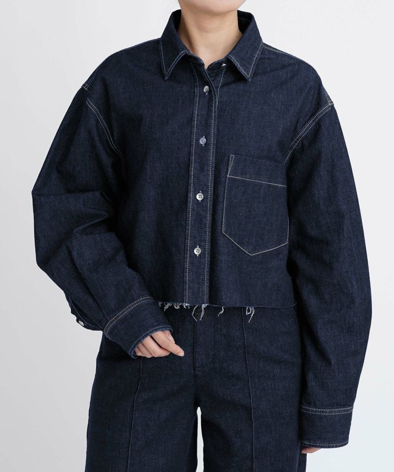 Yanukで人気のクロップドシャツをゆったりとしたフォルムにアップデートしました。秋にかけて暖かい日が続く端境期に、羽織りとしても使えたりと、なにかと重宝するクロップドシャツです。ゆったりとしたフォルムなので、少し寒くなってきたら、中に軽めのニットなども着ることができます。袖口はゆったりしていますが、小さくできるように2段階で調整できるようになっています。小さくすると袖をまくったりもできるようになります。裾は切りっぱなしのデザインで、カジュアルさと抜け感のあるデザインとなっています。