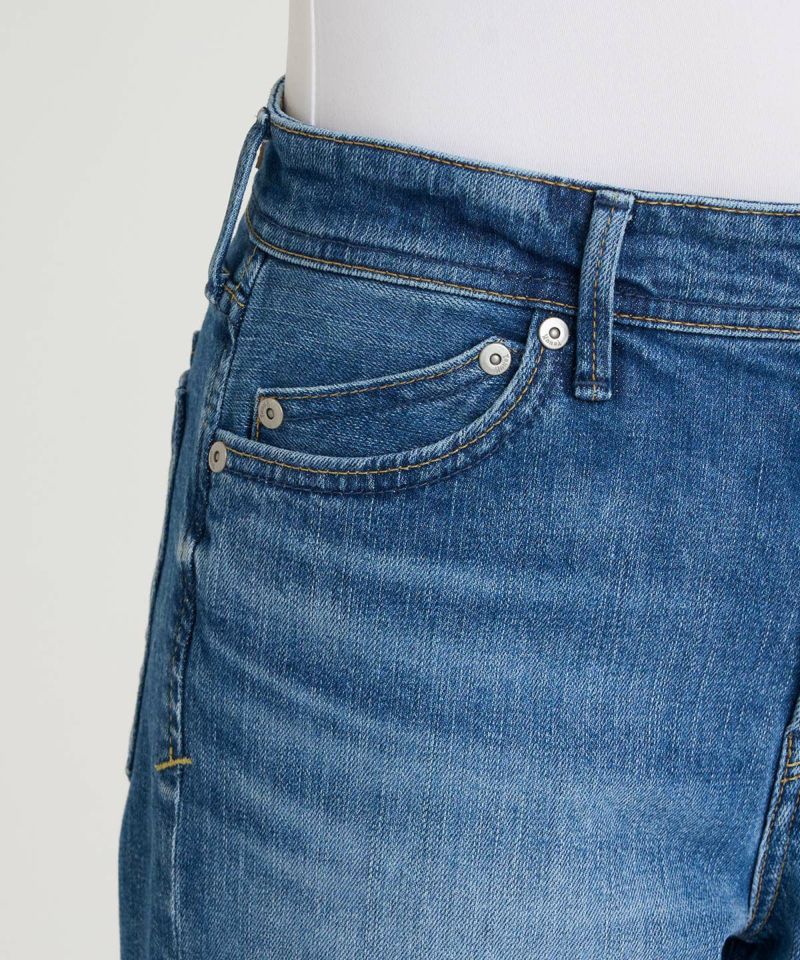 腰まわりをすっきりと引き締めるミッドライズの股上に、脚をまっすぐ見せるレッグラインが特徴のストレートシルエット“GINA(ジーナ)”。太すぎず細すぎない絶妙なゆとり感にこだわることで、快適に穿きやすく、美脚見えも演出してくれる1本。モダンに落とし込まれたストレートシルエットは、カジュアルにもキレイめにも合わせやすく、様々なコーディネートで活躍してくれる万能シルエットです。