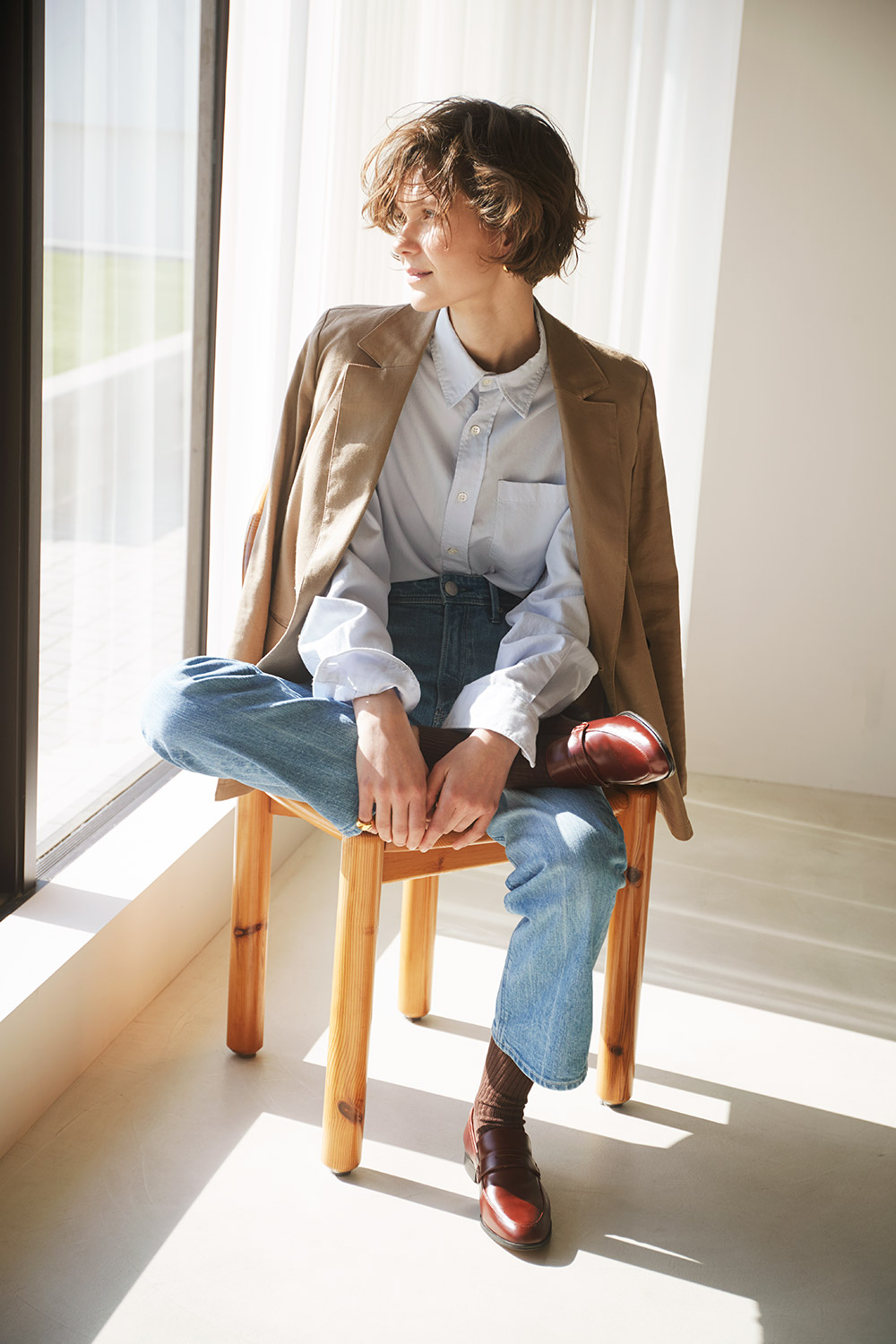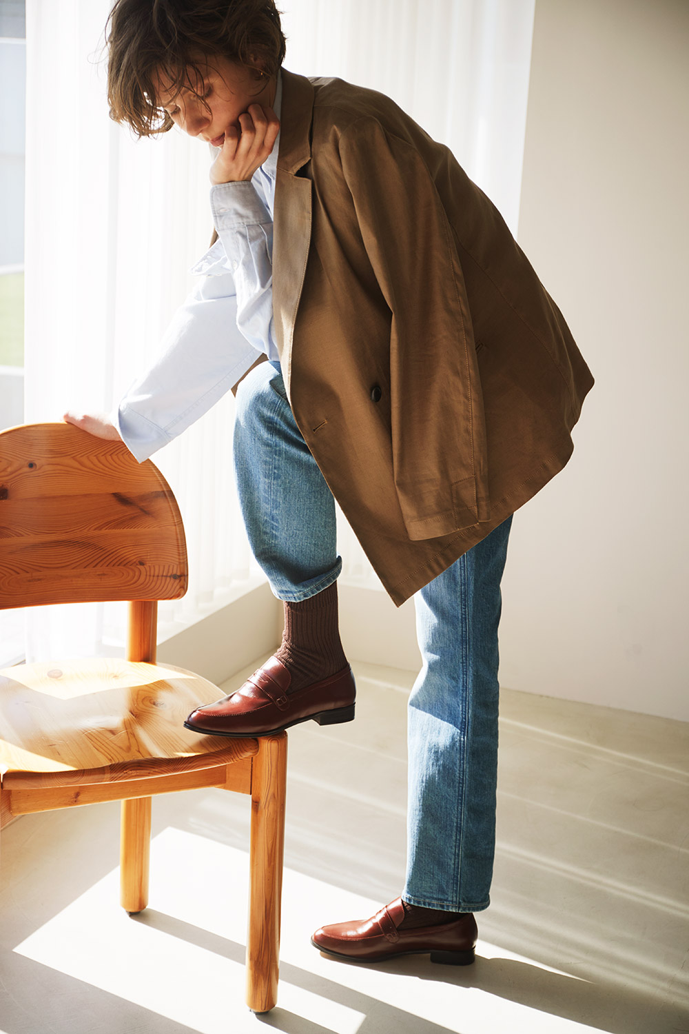 Ribbed Crew Socks / 20157163500 CBR/ ¥1,870 ANNETTE / 57161011 FUB / ¥31,900 Tailored Jacket / 57161402 CML / ¥47,300 Oversized Shirt / 57161832 SBL / ¥31,900