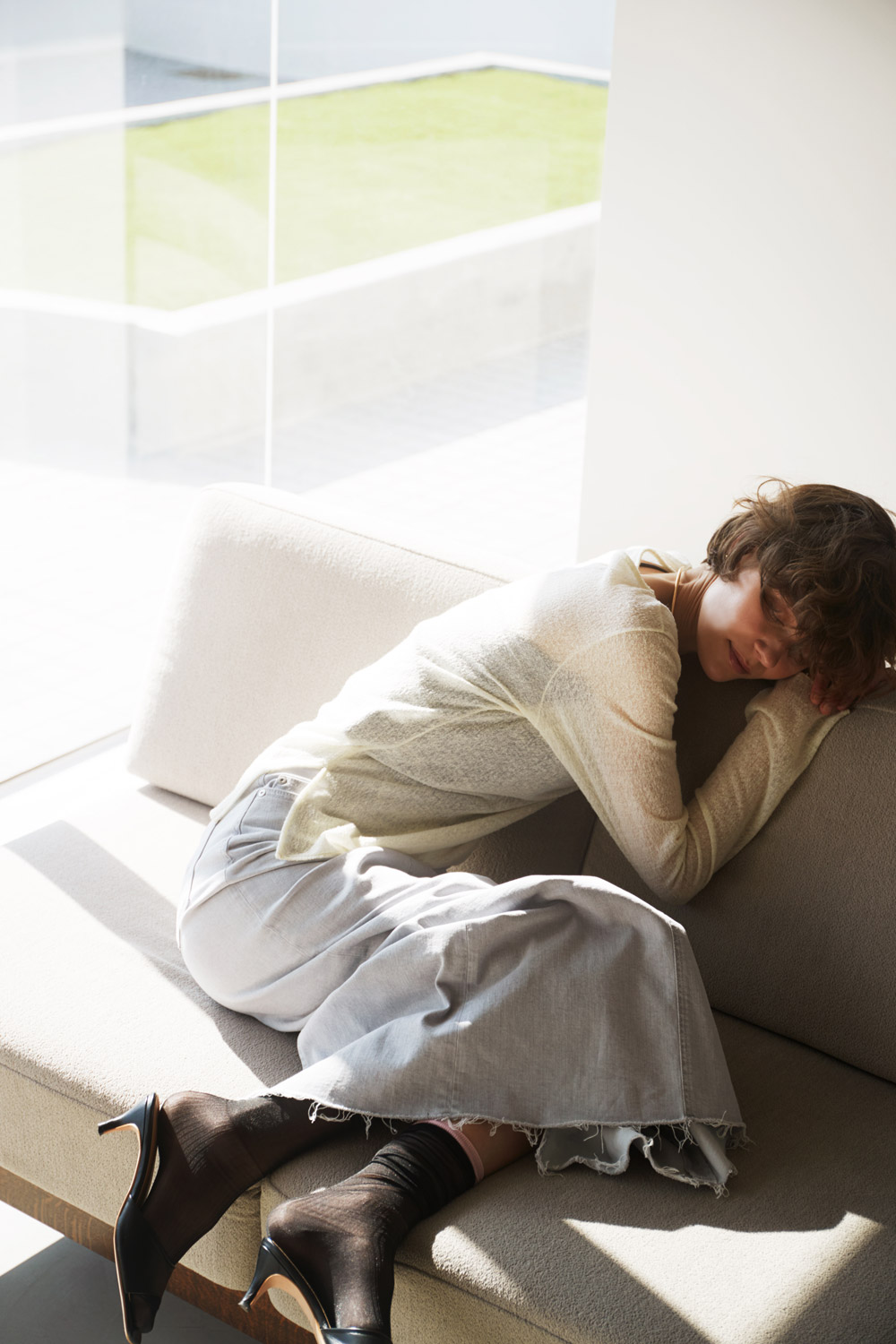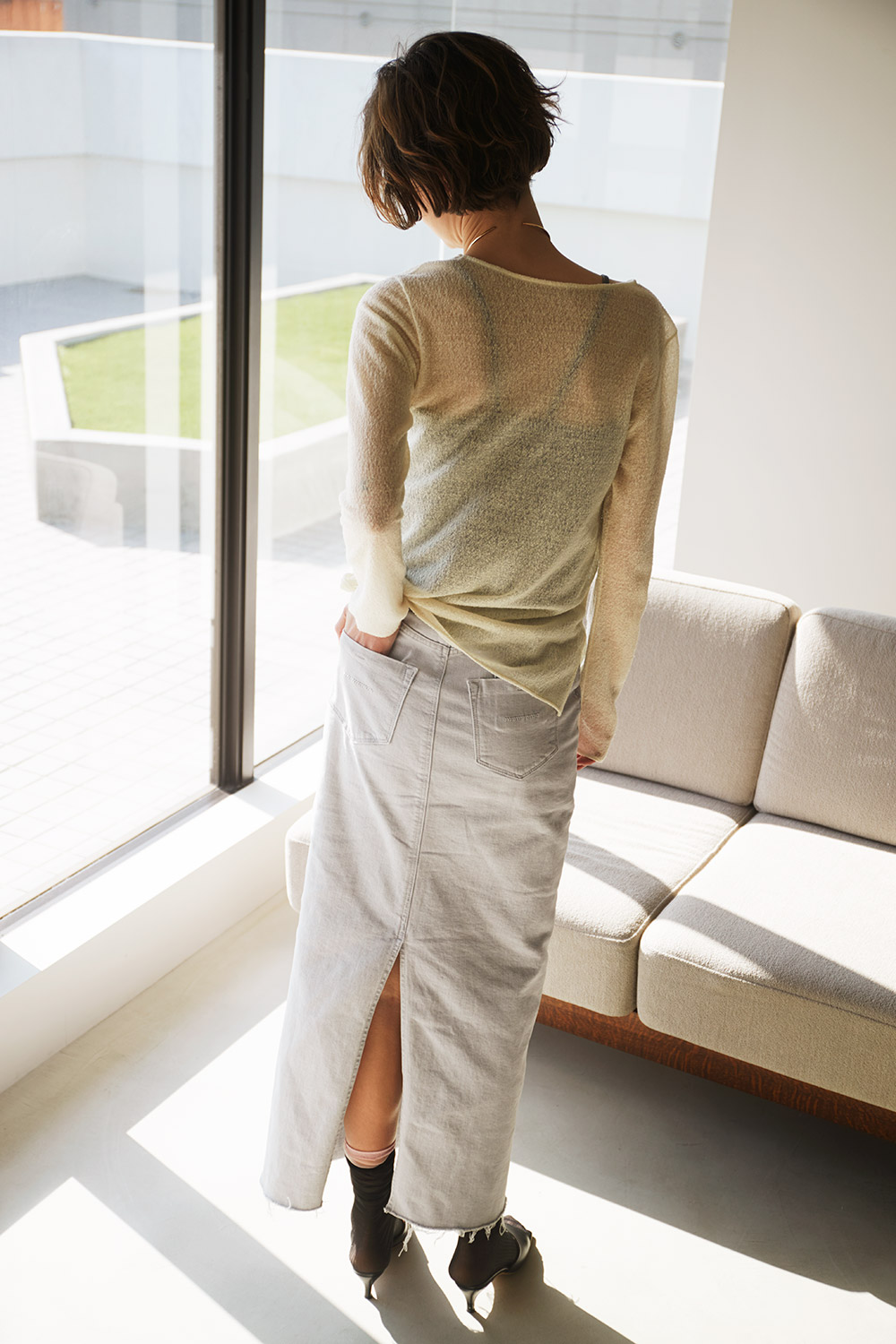 Lace High Socks / 20157163502 WHT / ¥3,080 Tight Long Skirt / 57162302 CMF / ¥34,100 LYDIA / 57162381 CVL / ¥33,000 Sheer Jacket / 57162401 WHT / ¥33,000