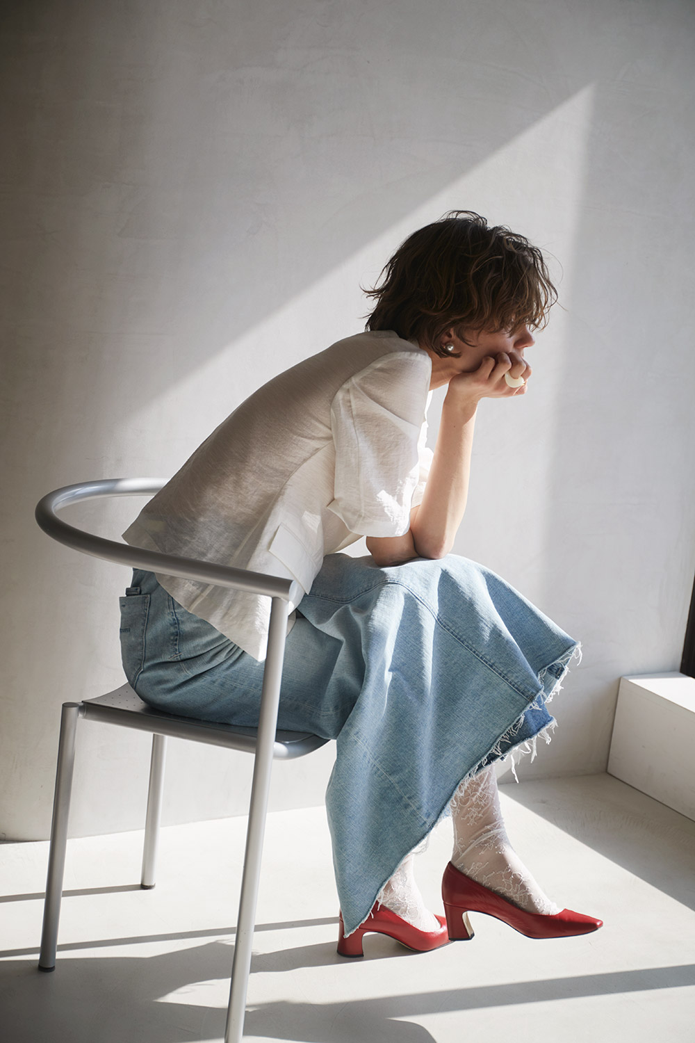 ホワイトデニムとのコントラストは