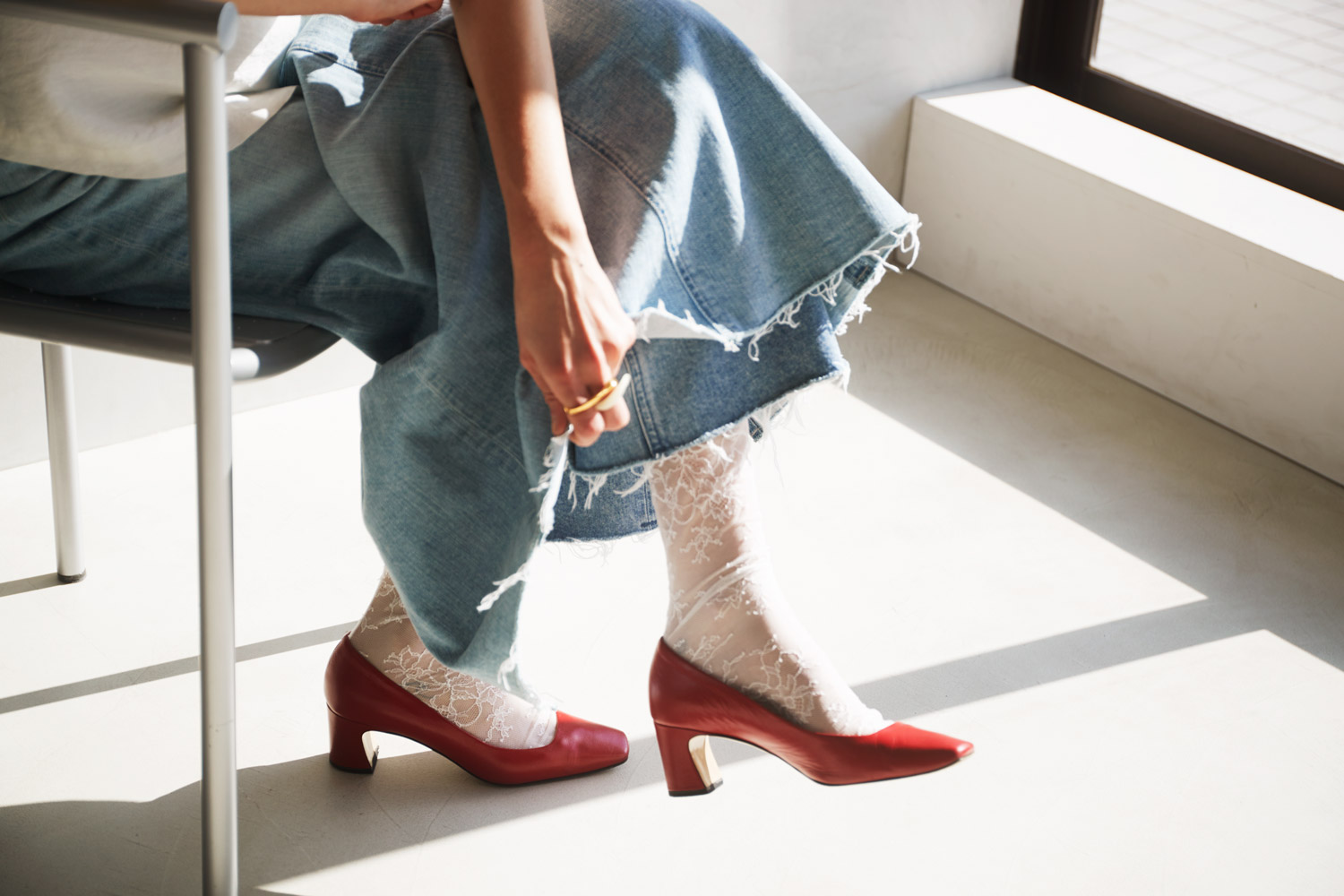 デニムの裾からさりげなくのぞかせて。