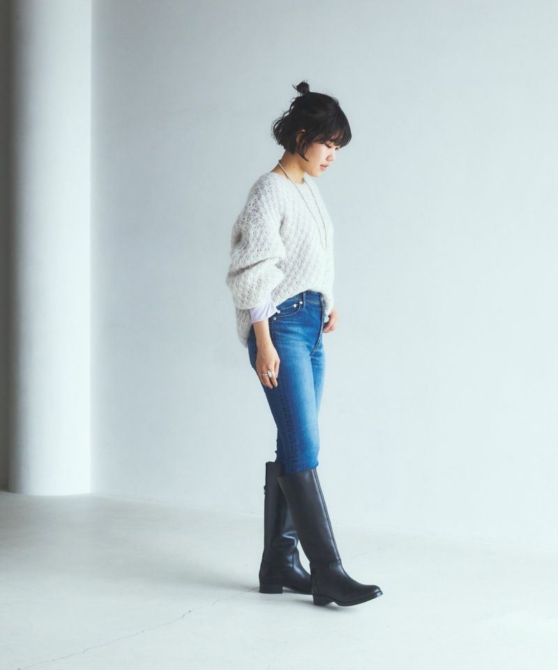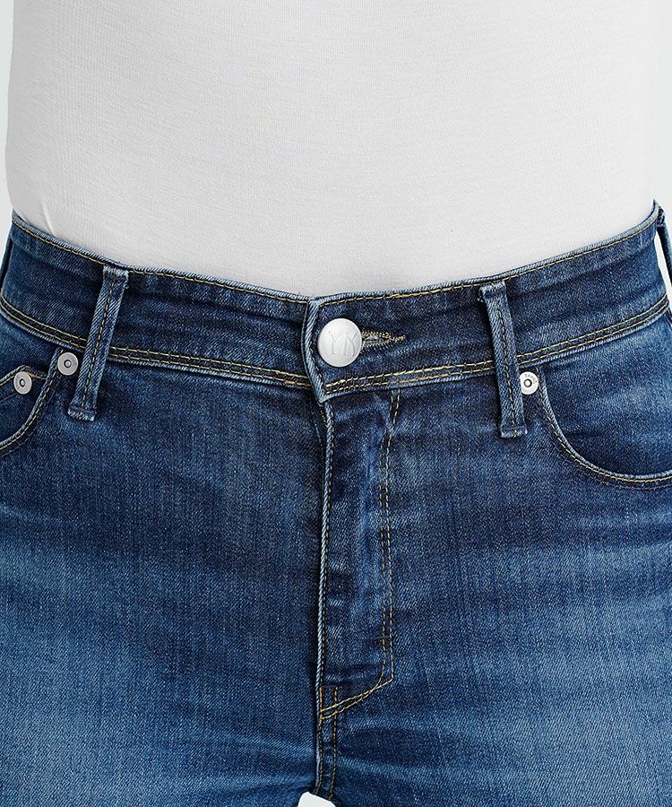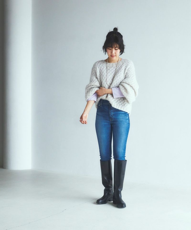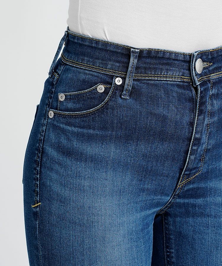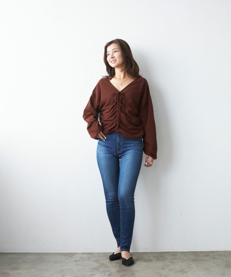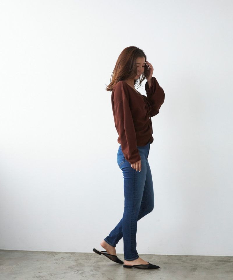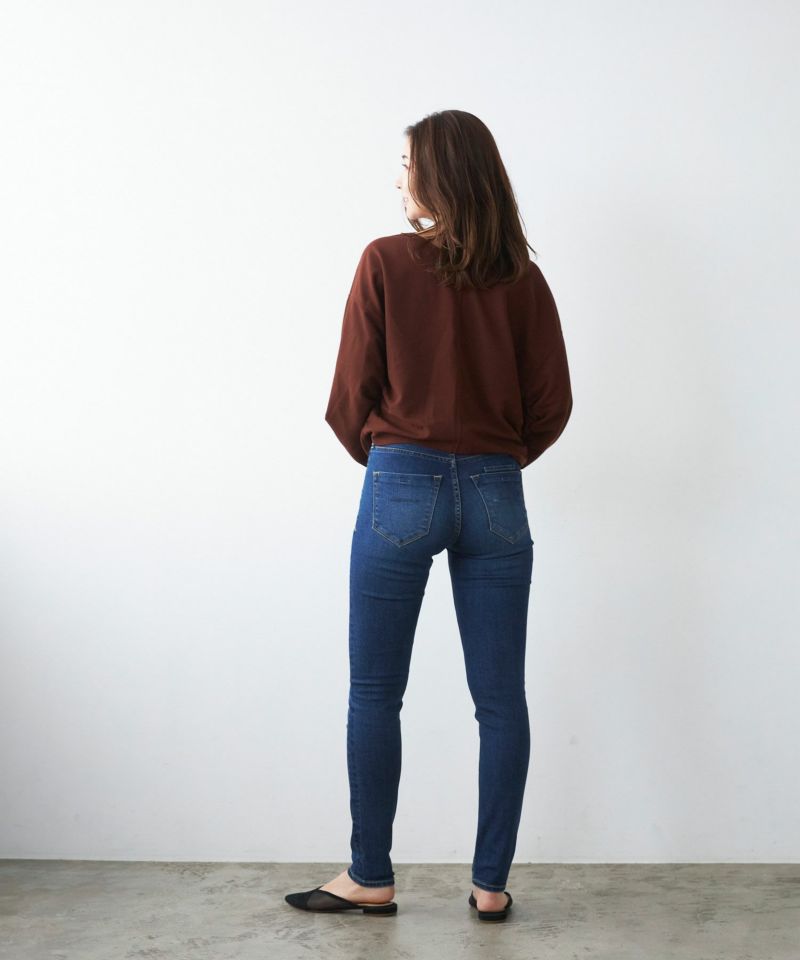 通年使える深みのあるブルー色です。少し濃い目のブルーにすることで、脚が膨張して見えず、引き締まった印象を与えてくれます。また、スリ加工もしっかりコントラストを付けることで、より細見えする1本に仕上がっています。