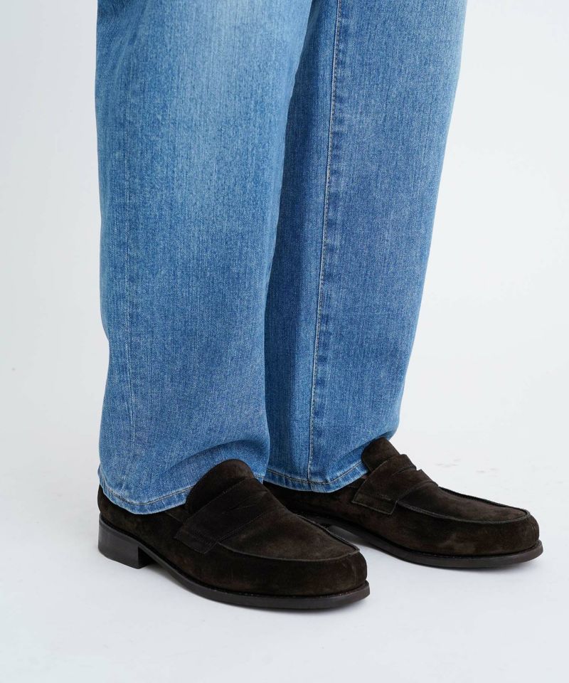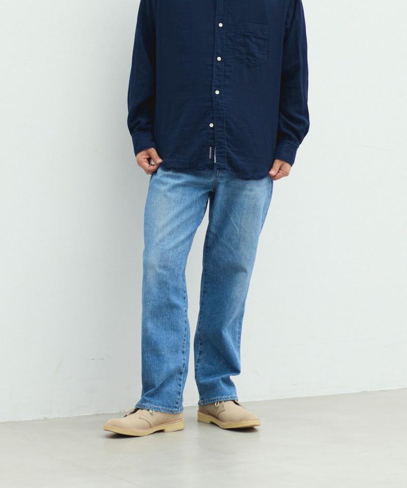 近年人気の冬の淡色。ブラウンの様なシックな色目のトップスに差し色として淡色ジーンズを使う事で、定番のジーンズが新鮮見えする一本です。新たにBerBerJin藤原氏からサンプリングしたVintageを基に抜け感のある表情を作成。Vintageっぽいのに取り入れ易い絶妙な抜け感がポイントです。