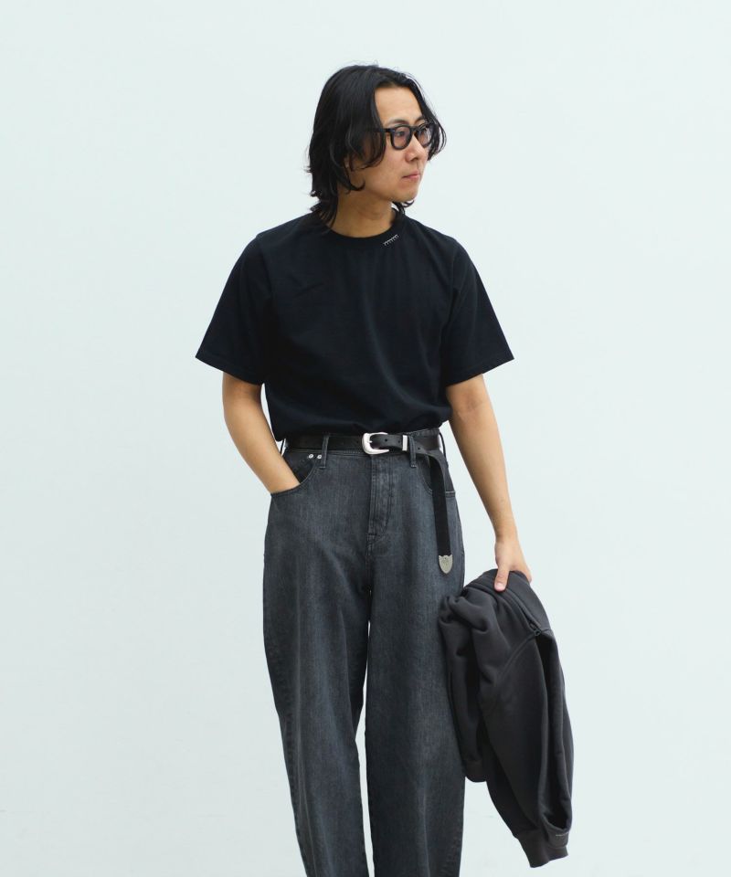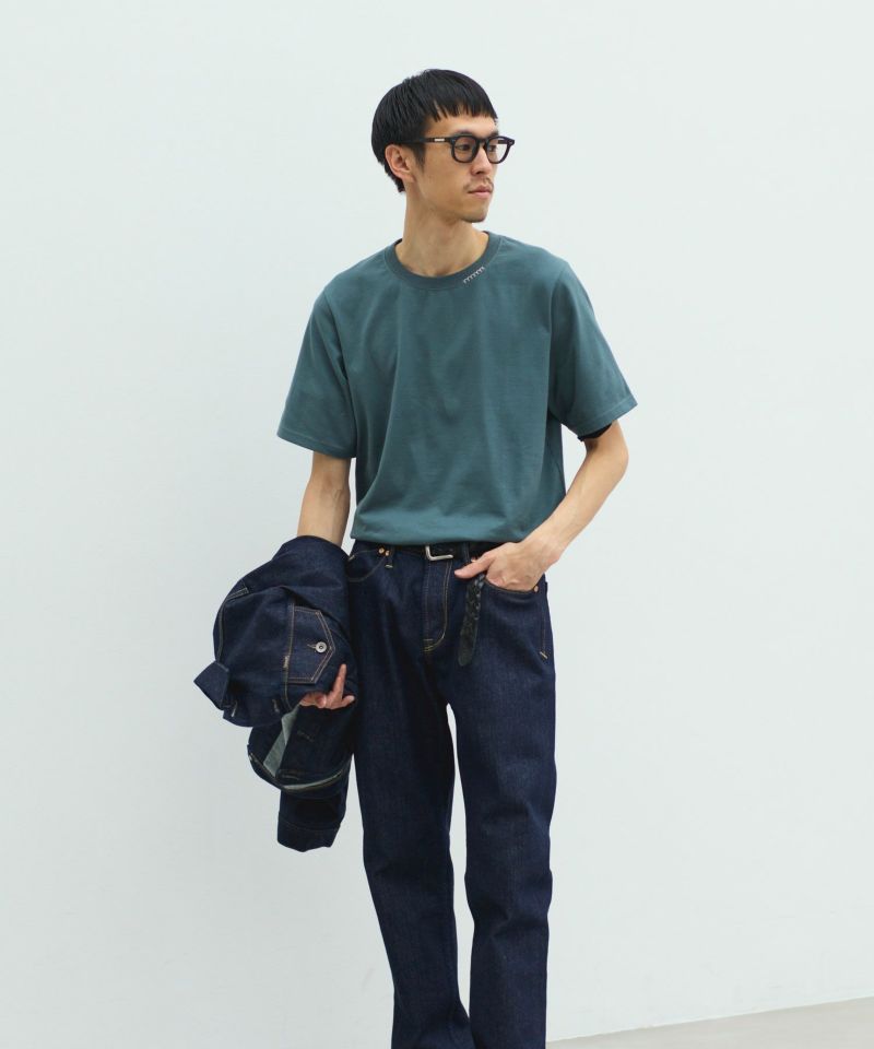 襟ぐりにY刺繍を施したシンプルながらもワンポイントアクセントになるTシャツです。オーセンティックなBOXシルエットで、一枚着でもお洒落に見える様に設定しています。程良いオーバーサイズ感が大人の抜け感を演出。細かいこだわりがつまった1枚です。