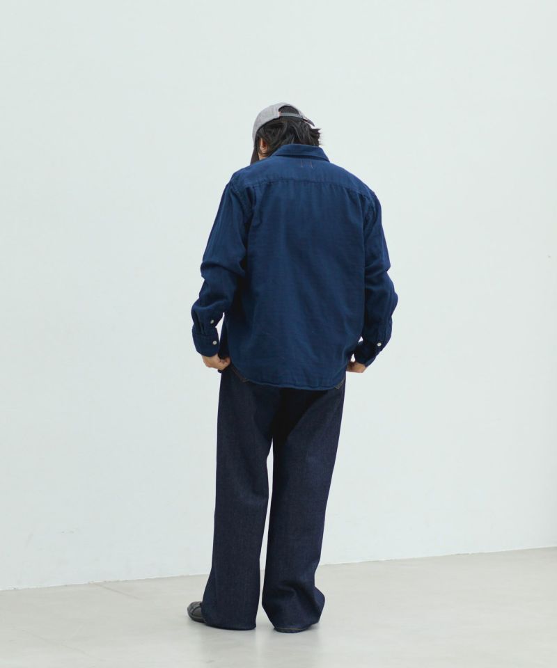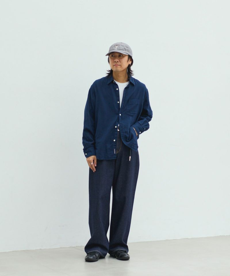 キレイ見えするワンウォッシュ。仕上げにプレスアイロンでしっかり押さえリジッドの様に見せる「プレスドワンウォッシュ」を採用。