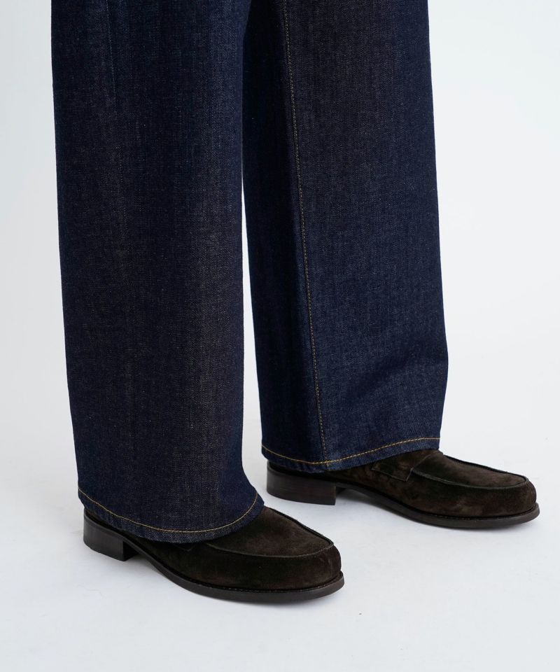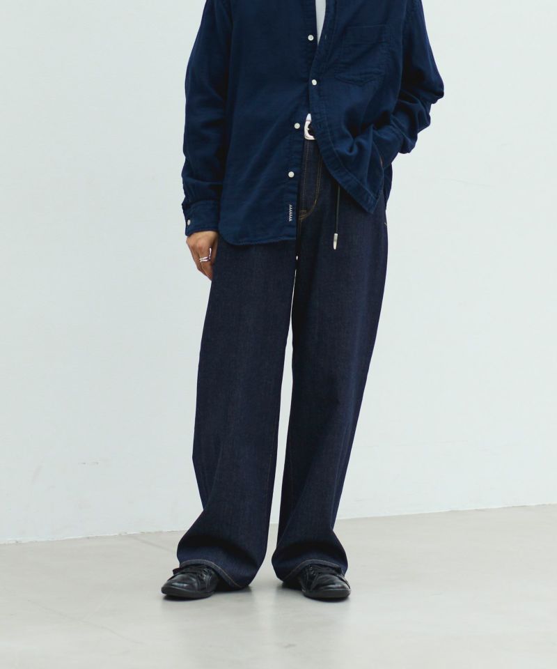 ダラしなくならない大人のルーズストレート “TULLY(タリー)” 。トラウザーの様に直線的でキレイに落ちるラインが上品な印象を生み出します。25AWからは股上を3.5cm浅くし、腰回りも少しシャープにすることで、汎用性を高め、より穿きやすいシルエットにアップデートいたしました。