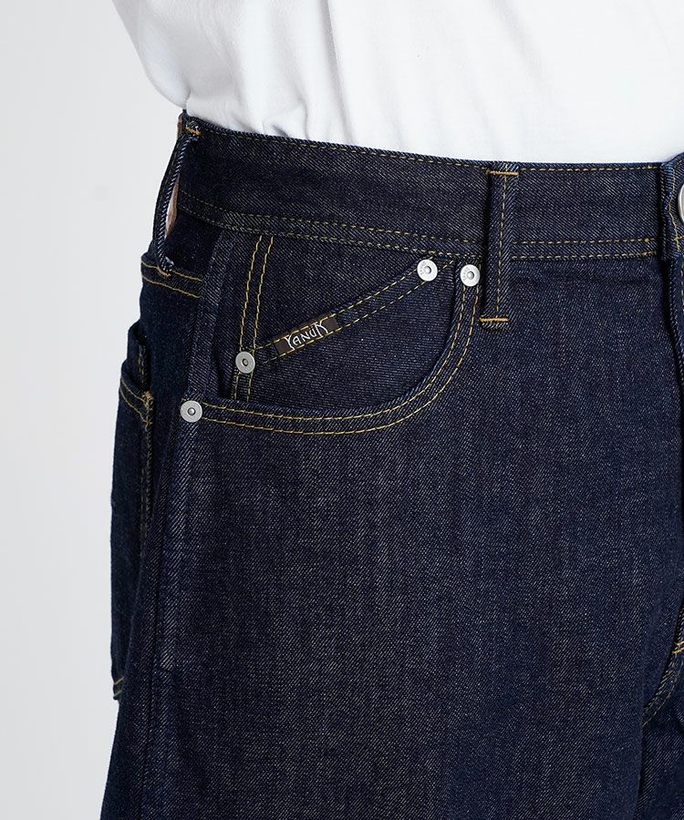 最上級ライン“ PREMIUM² "(プレミアムスクエアード)シリーズです。YANUKが独自に開発をした新素材で作り上げました。通常、ヨコ糸のみに使用するストレッチ糸をタテ糸にも使用することで360°のストレッチ性を実現。抜群の穿き心地とヴィンテージ感という本来相反するところにあるもの同士の融合を叶えました。あらゆる動きにしなやかに寄り添ってくれる究極のストレッチ性。YANUKの素材の中でも最高峰に位置するプレミアムな素材です。