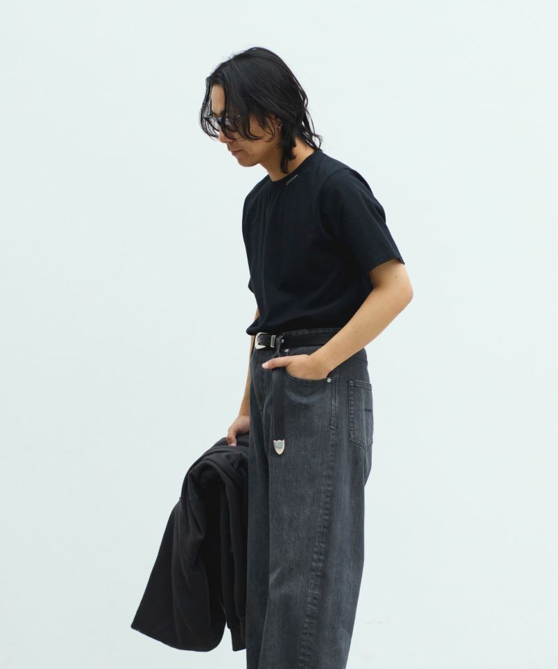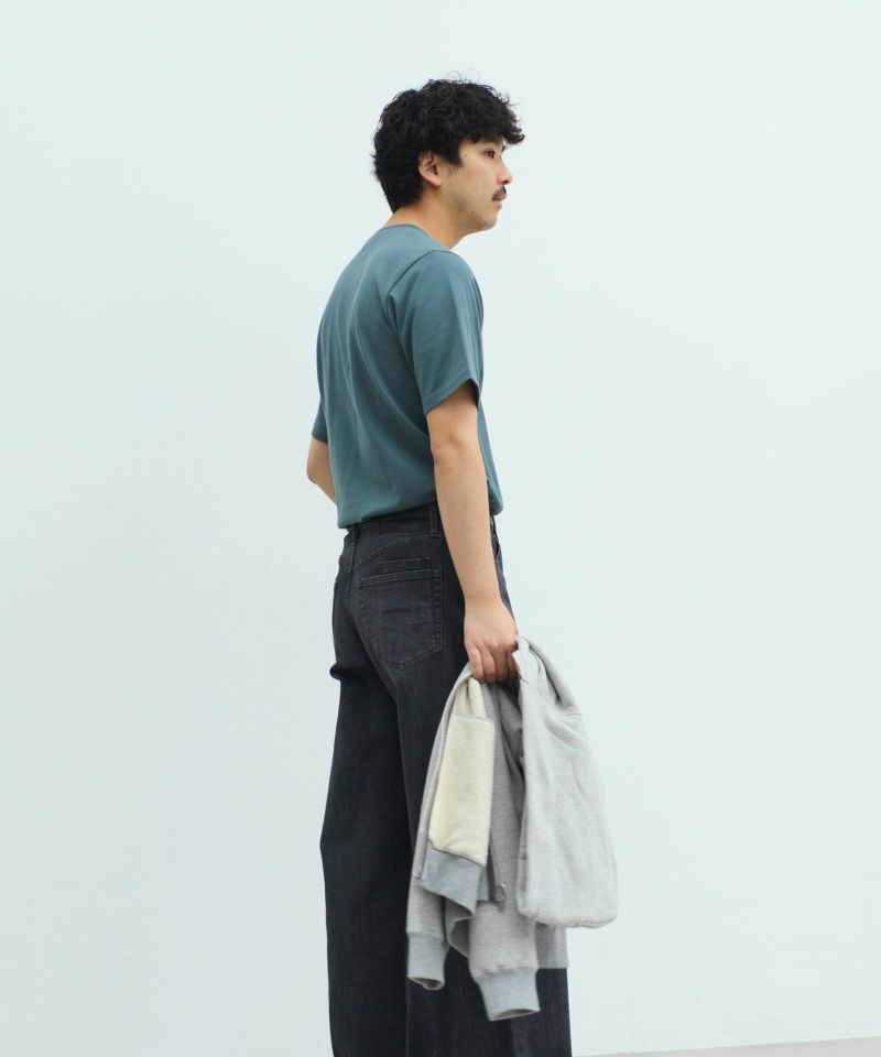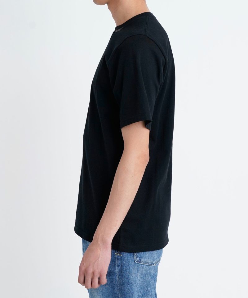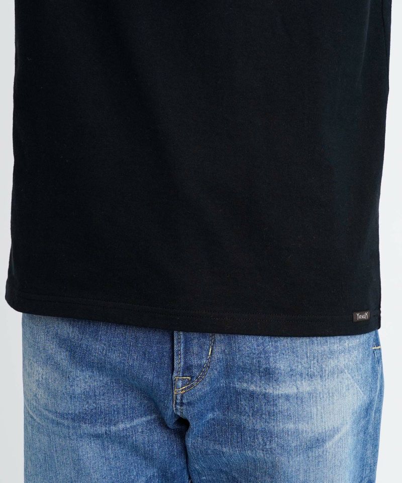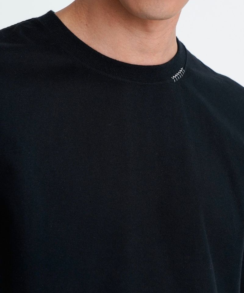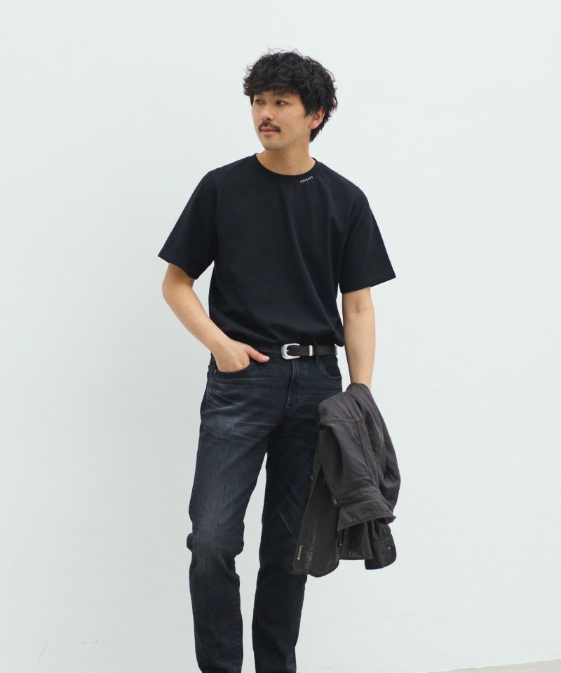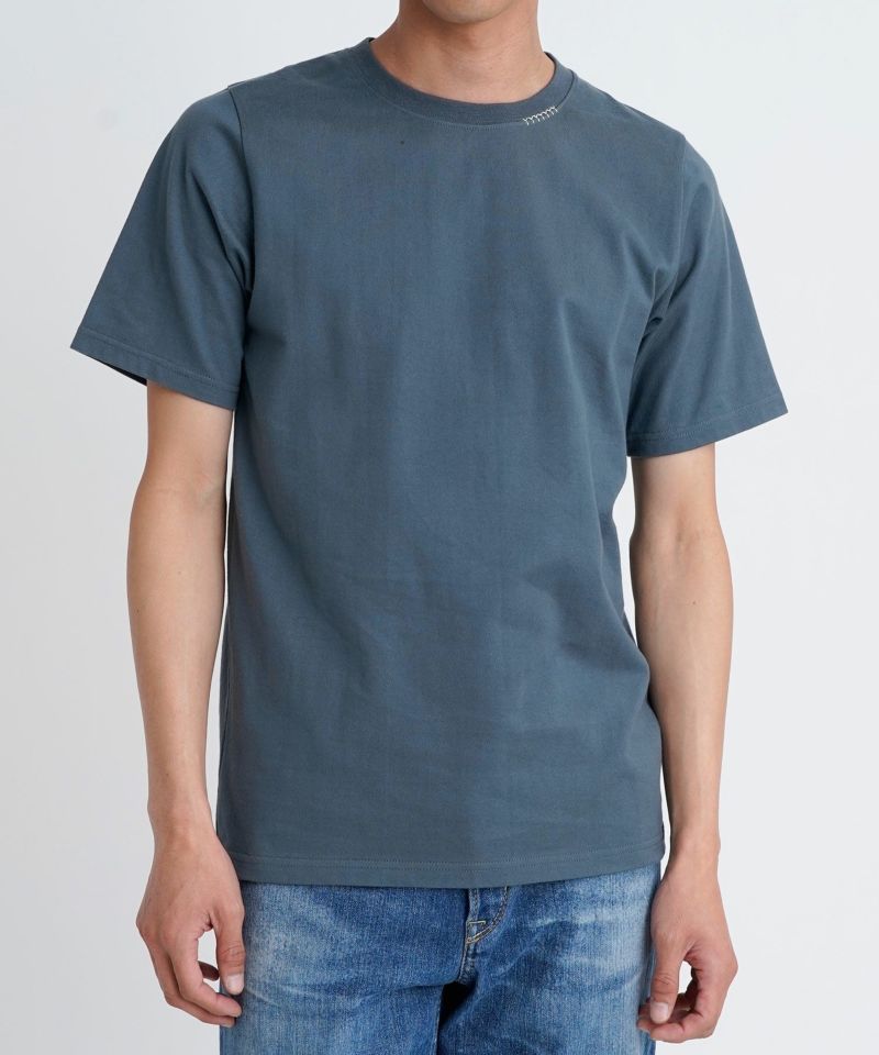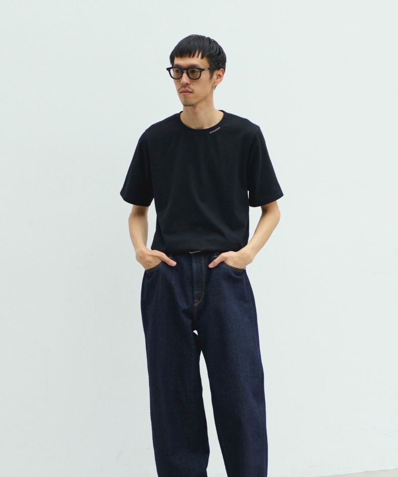 襟ぐりにY刺繍を施したシンプルながらもワンポイントアクセントになるTシャツです。オーセンティックなBOXシルエットで、一枚着でもお洒落に見える様に設定しています。程良いオーバーサイズ感が大人の抜け感を演出。細かいこだわりがつまった1枚です。
