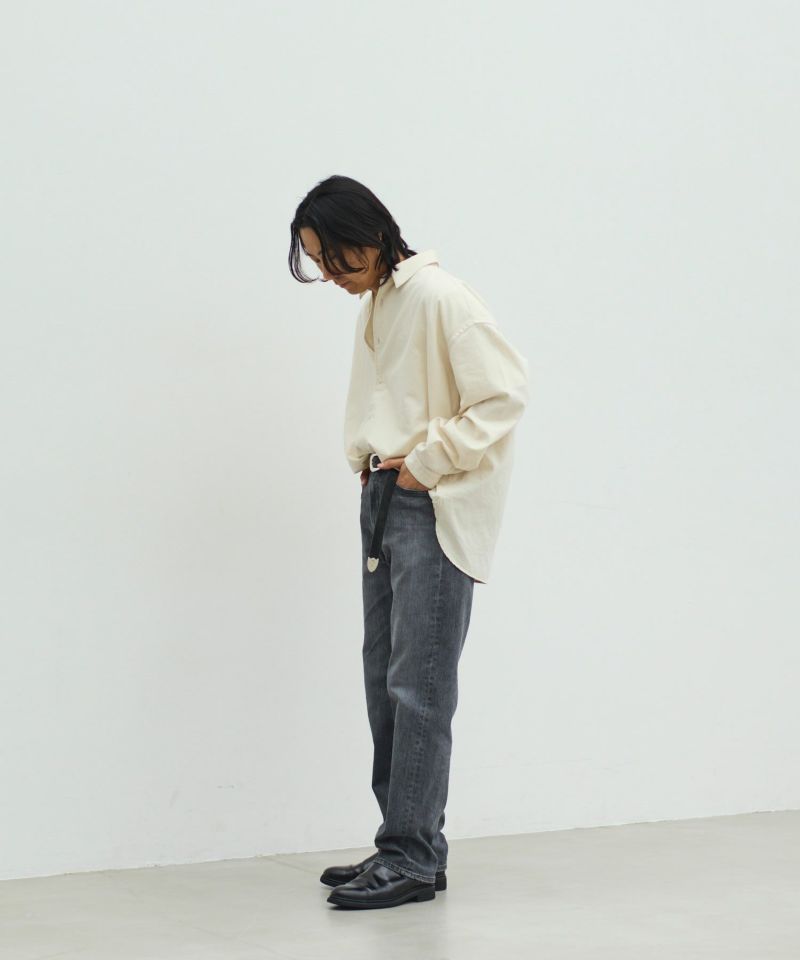 業界でも価値の高いヴィンテージデニムをサンプリングし、それをまるで白黒写真の様に表現しています。古着のブラックデニムには無いメリハリの利いたモノトーンの表情が特徴です。抜け感がありながらもエイジングがしっかりと感じられるグレーUSED加工です。