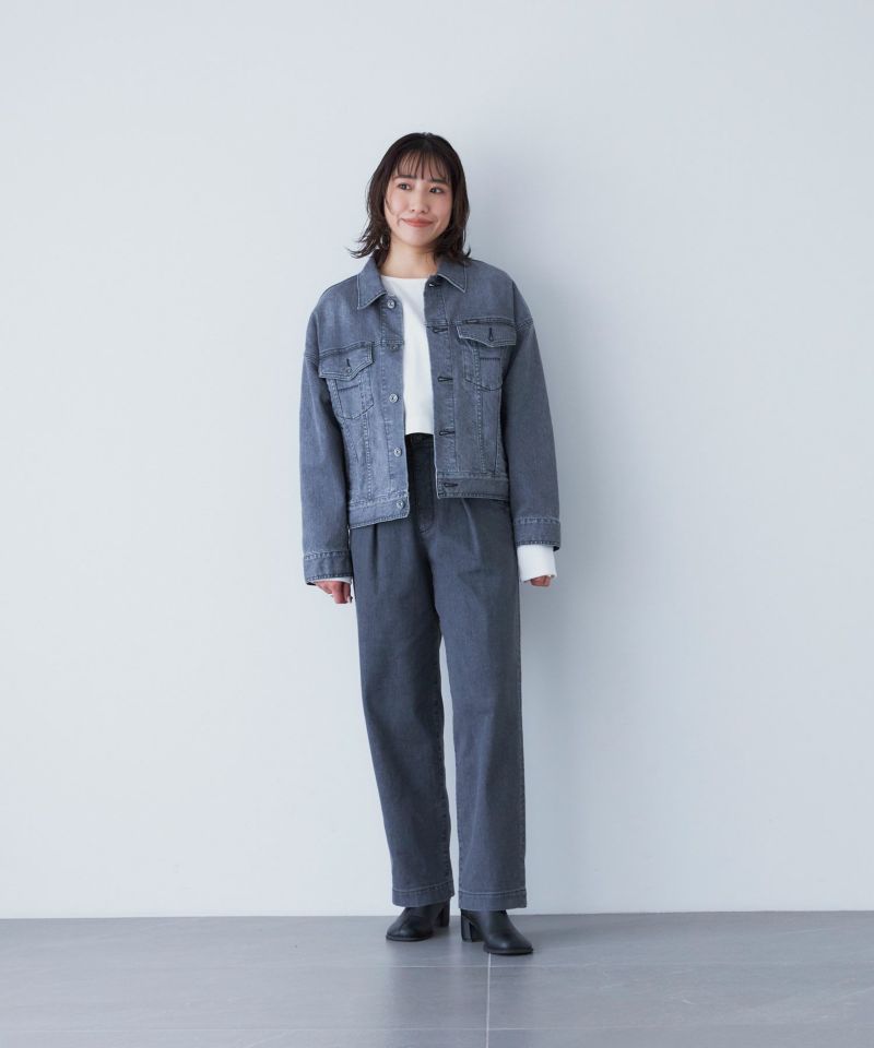 カラーパンツとは異なり、デニムならではのUSEDグレーです。いい意味でクリーンになりすぎない、程よいカジュアル感が特徴です。デニムonデニムスタイルも注目度が高まっており、デニムシャツともセットアップで着て頂けます。