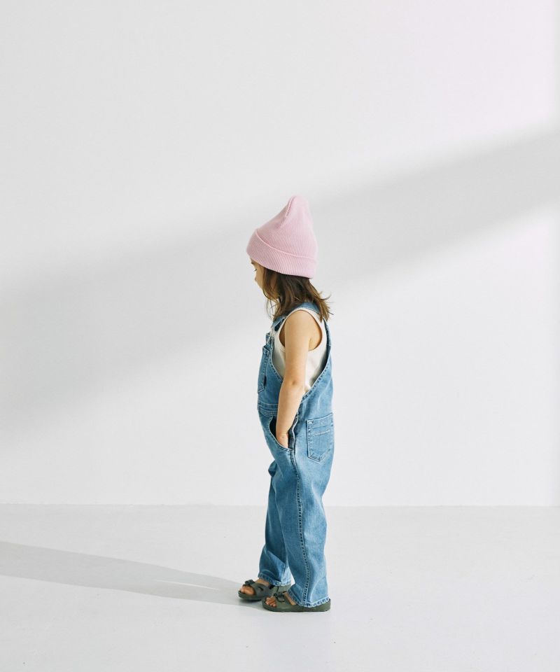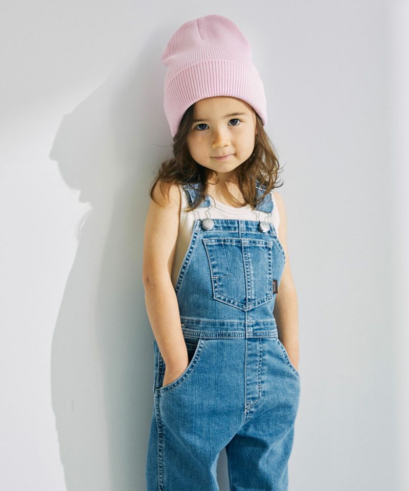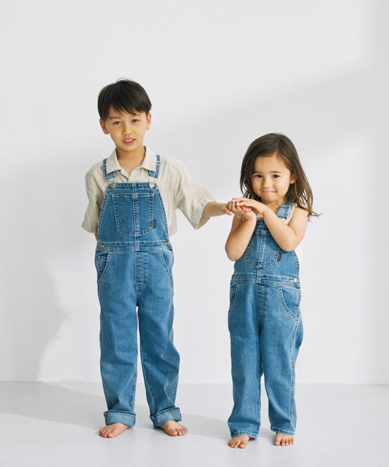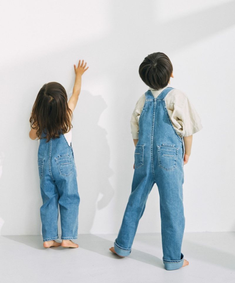 YANUK KIDSが新登場。本格的な見え方にこだわりながら、YANUKのアイデンティティを落としこんだデザインに仕上げました。ジーンズの顔であるバックポケットの刺繍は、YANUKジーンズと同様、16個のY刺繍を施しました。また、6ポケットの採用・前立てステッチなど、細部までYANUKジーンズのディテールを採用し、大人ジーンズとキッズオーバーオールを着て、かわいいリンクになるようにデザインしました。