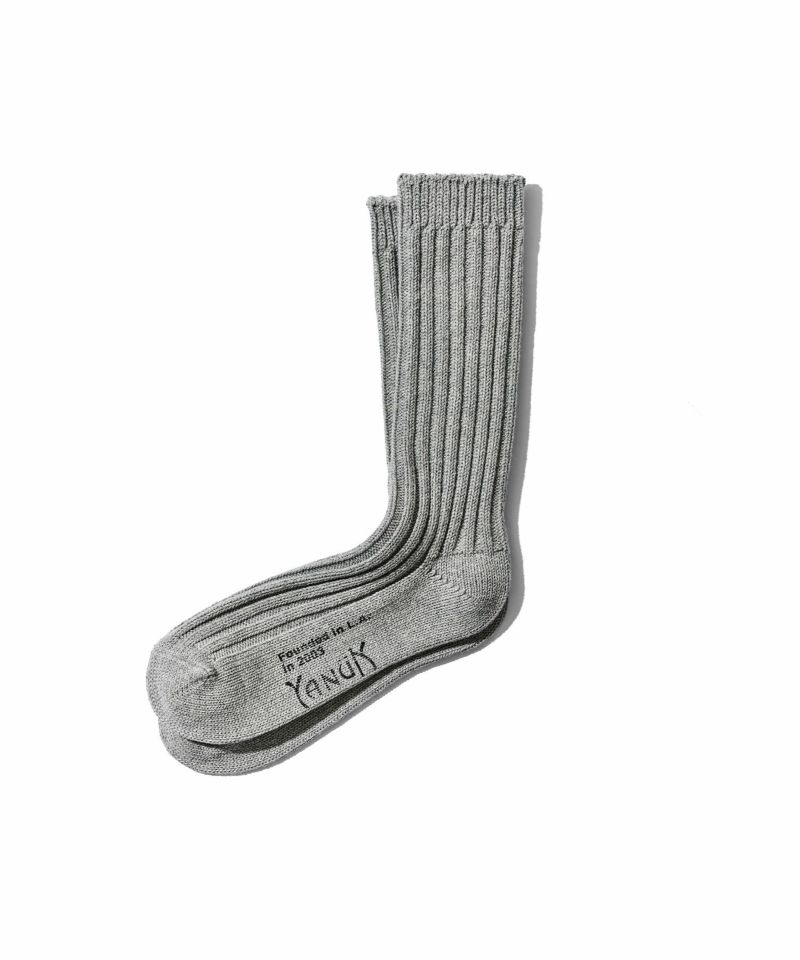 糸を紡績する過程で短い繊維をとりのぞき、艶と強度が増すコーミングを施したコーマ糸を使用したコットンリブソックス。コーマ糸をたっぷりと使い、稀少なローゲージのリブ機でゆっくりと編みあげました。ゆっくりと編まれた編み地は空気を含み、ふっくらとしたほどよい弾力が魅力的なソックスです。