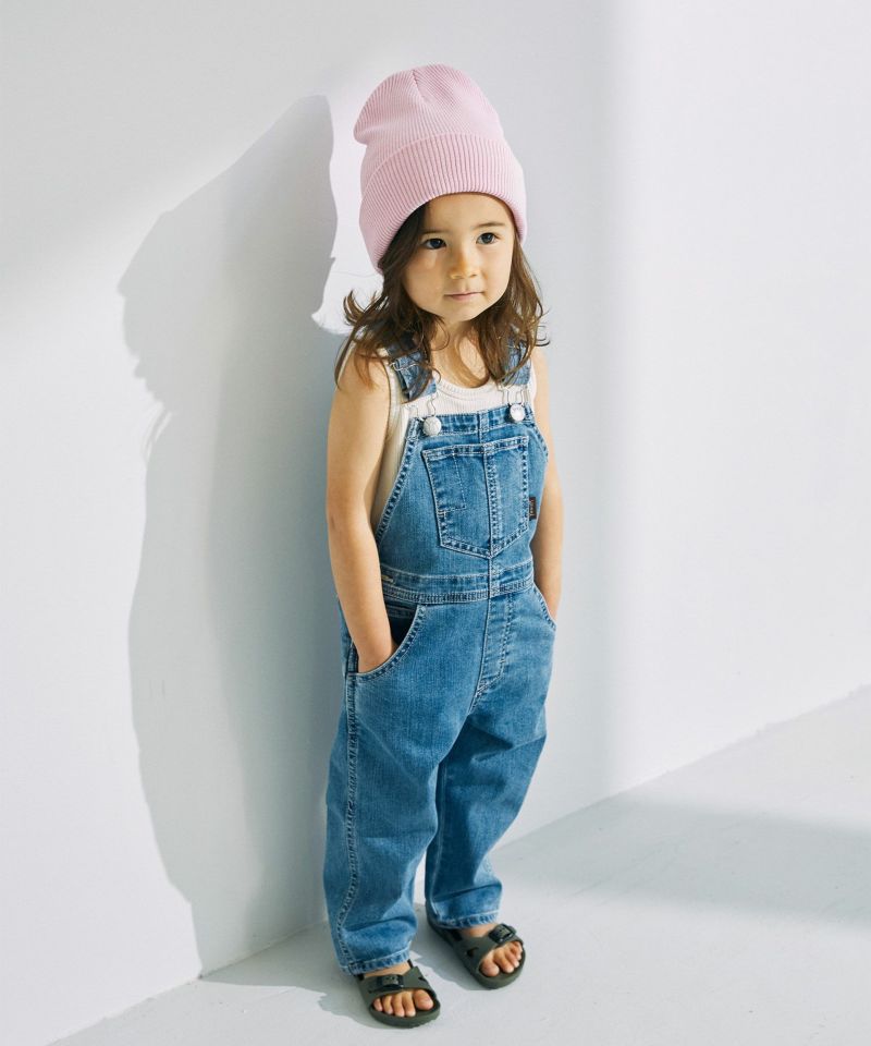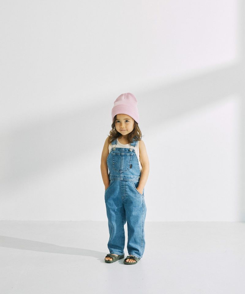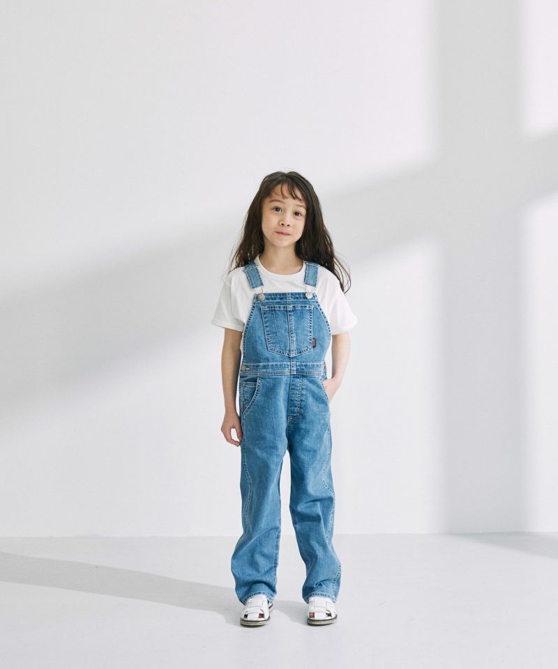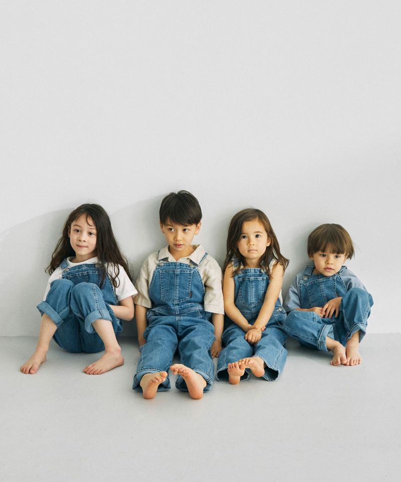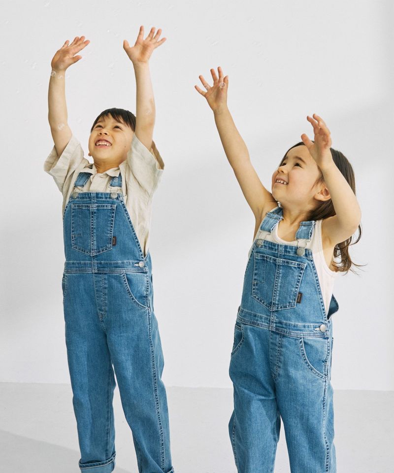 YANUK KIDSが新登場。本格的な見え方にこだわりながら、YANUKのアイデンティティを落としこんだデザインに仕上げました。ジーンズの顔であるバックポケットの刺繍は、YANUKジーンズと同様、16個のY刺繍を施しました。また、6ポケットの採用・前立てステッチなど、細部までYANUKジーンズのディテールを採用し、大人ジーンズとキッズオーバーオールを着て、かわいいリンクになるようにデザインしました。