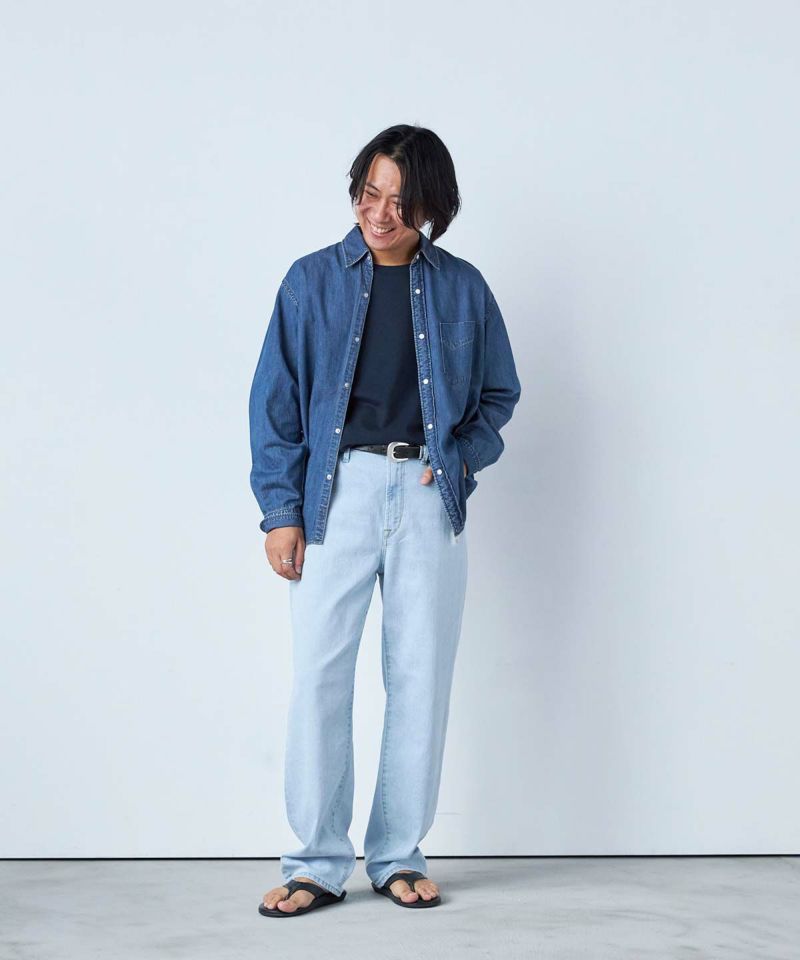 きれいめなスタイリングに合わせやすいワイドシルエット“Roomy(ルーミー)”。ウエストをジャストフィットするよう設定しているため、腰周りがスッキリ見えます。緩やかなバルーンシルエットになっていることで、トラウザーのような大人っぽい印象に。