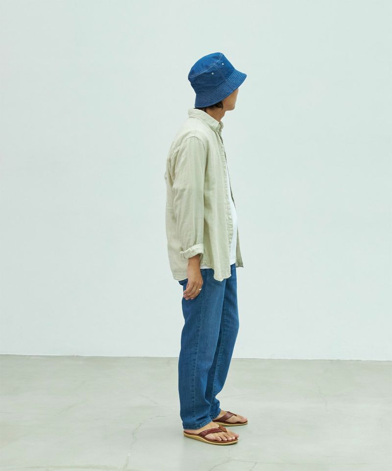 贅沢に4種の素材の良いとこ取りをして仕上げた8ozデニムで、麻には珍しい伸縮性も持たせています。麻特有のシャリ感は残しつつ「しわがつきやすい」や「ちくちくする」といったデメリットをレーヨンを入れる事により解消。非常に軽く清涼感のある着心地の良い素材です。