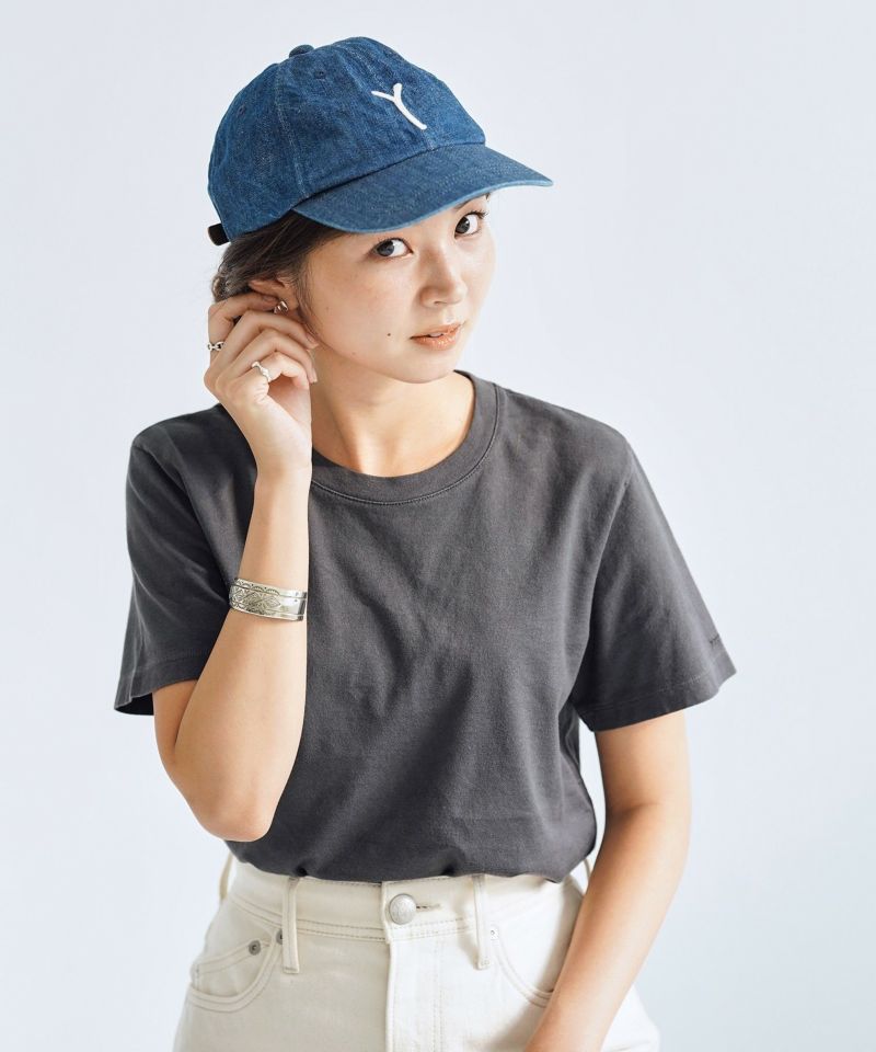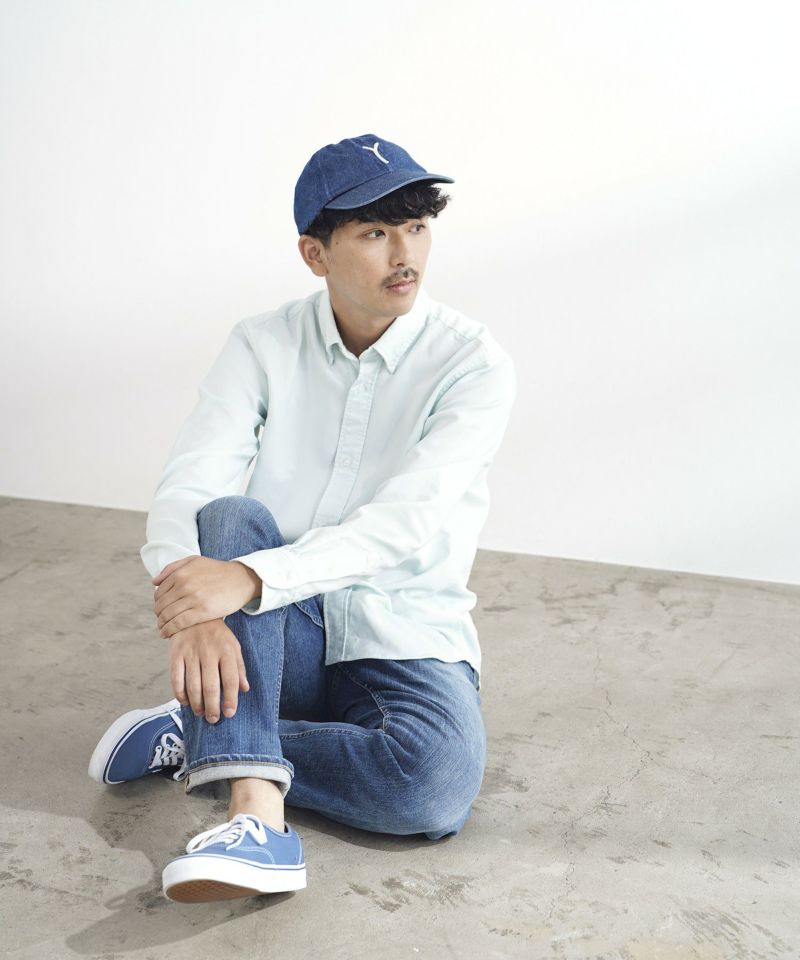 「100年先も喜ばれる帽子作り」を目指し、大阪で創業してから70年以上もの間、日本の帽子作りを支えてきた歴史を持つ老舗である「中央帽子」と取り組んだ、YANUKのベースボールキャップが誕生しました。 一見するとネイビーツイルの生地ですが、実はタテ糸ロープ染色のインディゴに、ヨコ糸をチーズ染色の硫化ブラックを打ち込んだデニム地を使用。着用と洗濯を繰り返すことで、デニムブランドが提案するキャップならではの経年変化も楽しめます。 クラシックなベースボールキャップのように少し浅く被るタイプのシルエットを採用しつつも、かぶり心地を重視。後側を深くすることで、着用した際にしっかりとしたホールド感があります。