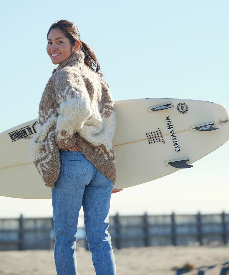 実際の古着を参考にした、本格的な淡色です。高いレベルのレーザー加工の技術により、本物のヴィンテージと見比べても見分けがつかないくらいの完成度です。本格的な顔にするため、あえて綿100%デニム特有のシボ感を入れています。また、実際に穿きこんだようなヒゲは、淡色ハイウエストで気になる腰回りの間延び感を軽減してくれ、モモスリが中心に寄っていることで、脚をきれいに見せてくれます。より古着風の雰囲気を表現するために、YANUKメンズで使用している大きめのヒップラベルを採用しているのもポイントです。