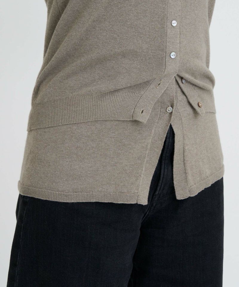 コットンカシミヤを使用。カシミヤをブレンドすることにより、しなやかで肌触りが良く、上品な印象に仕上がっていります。厚すぎず薄すぎない程よい肉感で、長いシーズン着用することができます。