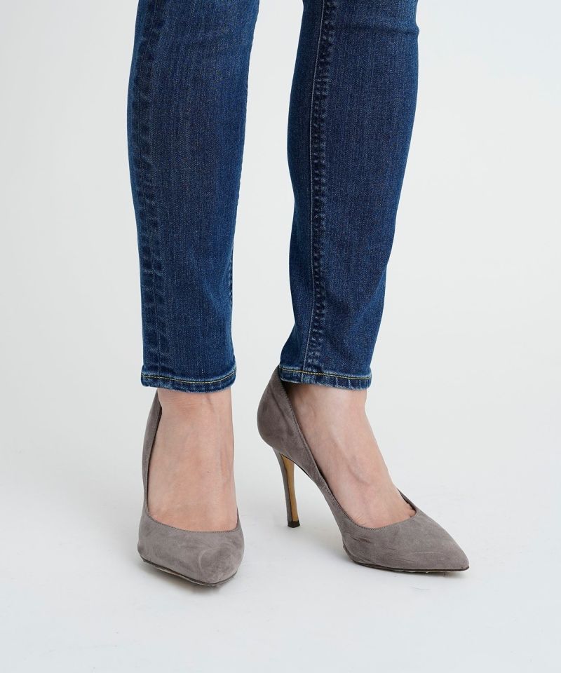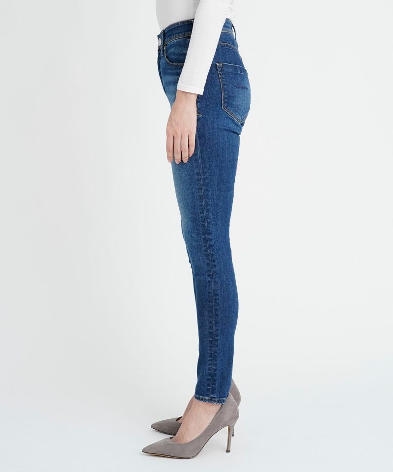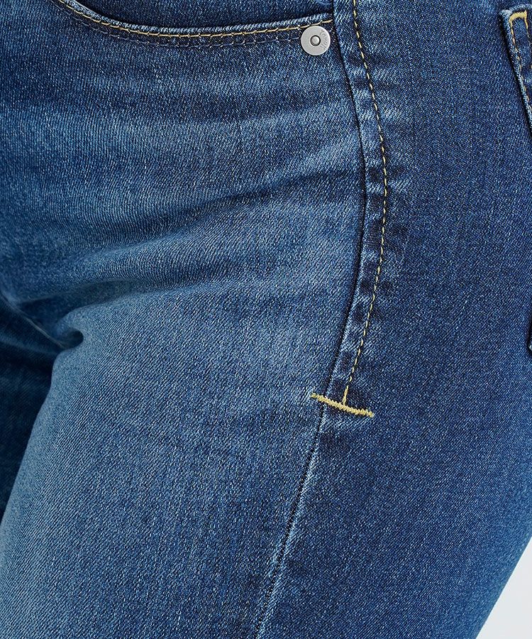 通年使える深みのあるブルー色です。少し濃い目のブルーにすることで、脚が膨張して見えず、引き締まった印象を与えてくれます。また、スリ加工もしっかりコントラストを付けることで、より細見えする1本に仕上がっています。