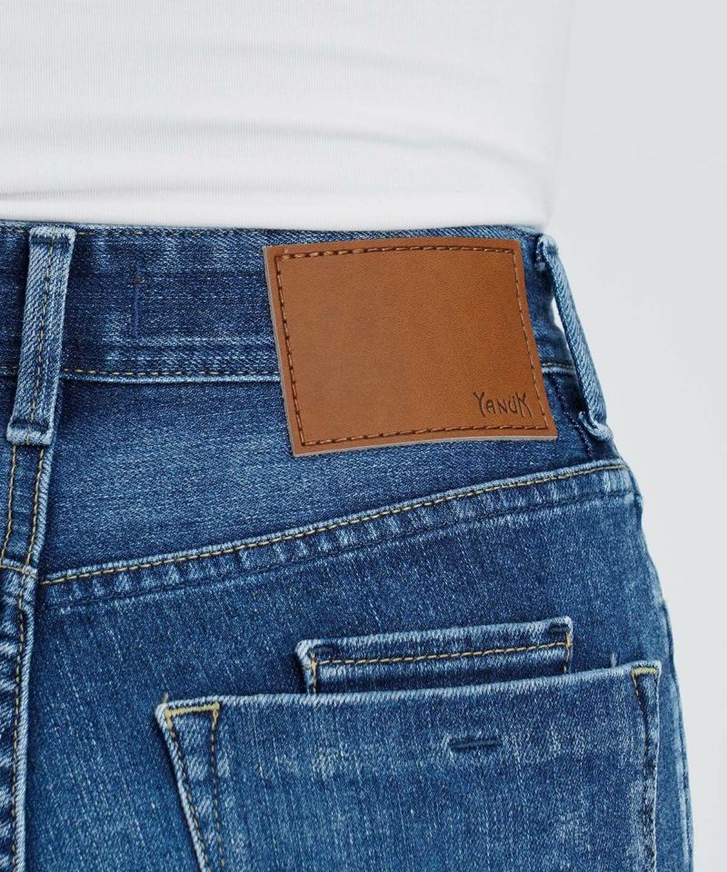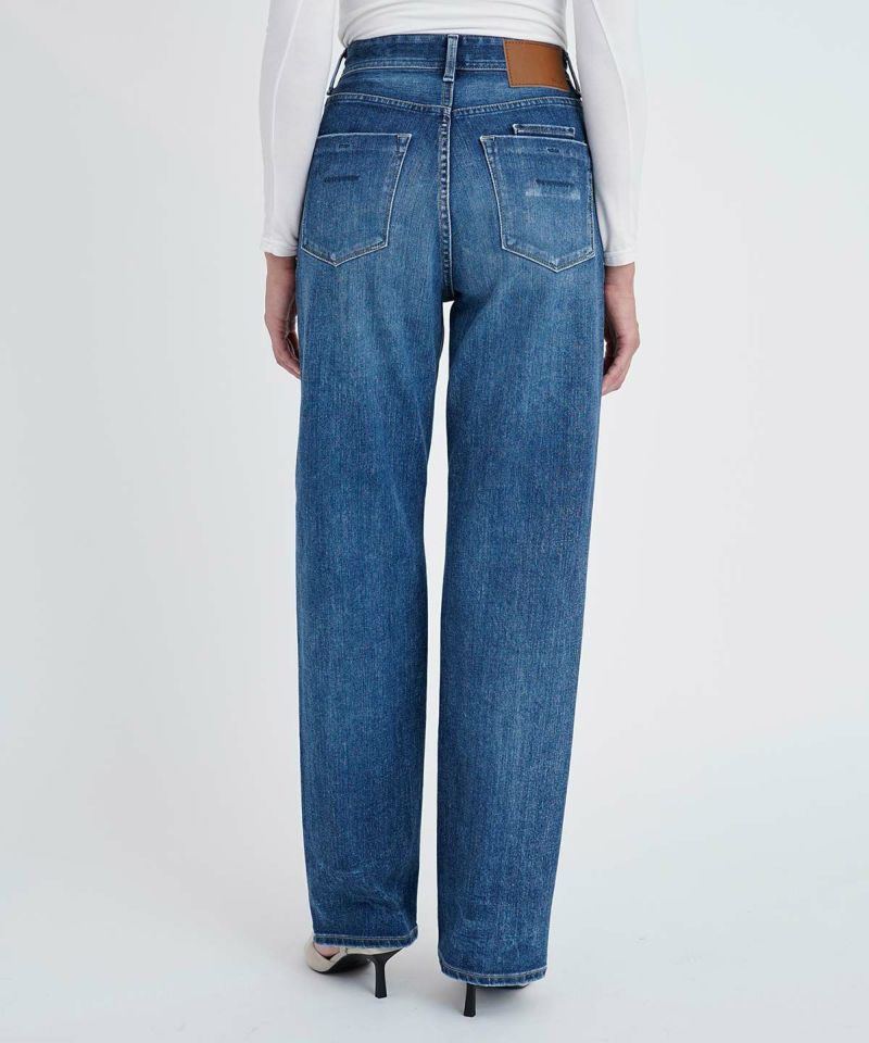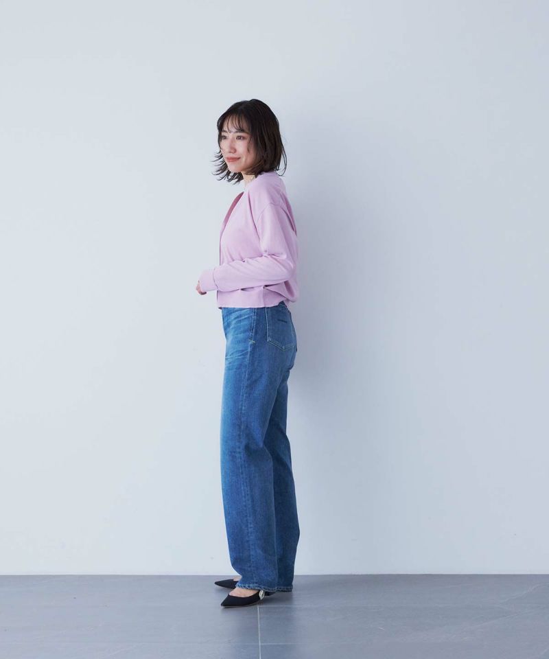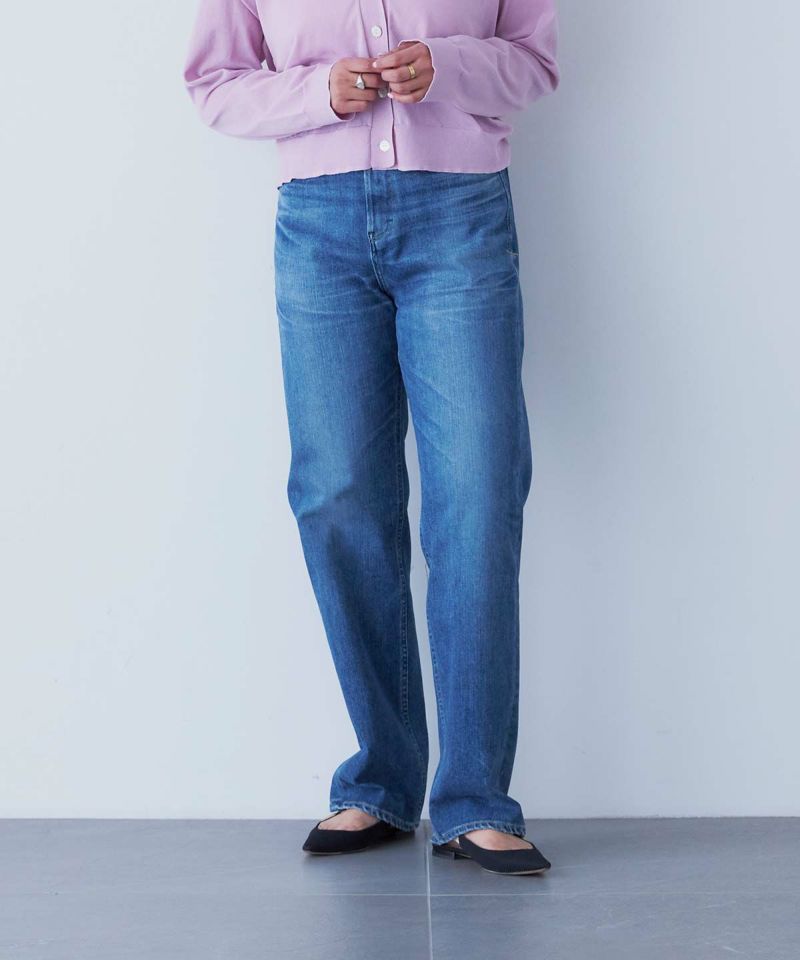深さがある股上にゆるっとしたストレートが特徴のLEA。ゆとりのあるストレートは野暮ったくなりがちですが、LEAはパターンにこだわることで美脚に、そして脚長に見せてくれるYANUKらしいゆるストレートデニムです。