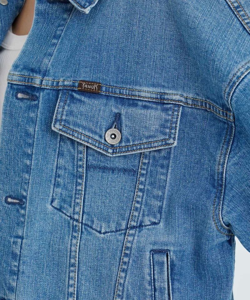 YANUKらしいきれいめの中淡色のジーンジャケットです。ヴィンテージのような自然で本格的でありながら、かつ女性らしさを残した加工感となっています。きれいなブルー色で年間通して着まわせるカラーです。