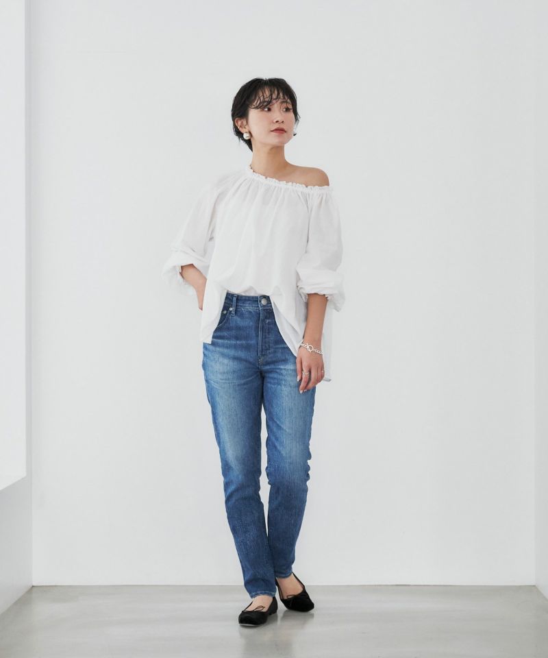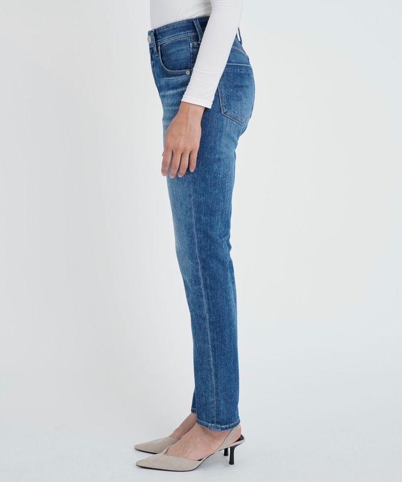 通年穿きやすい王道的ブルーカラー。ヴィンテージをサンプリングし、本格的な表情に仕上げつつも、YANUKらしい美脚見え、スタイルUPにこだわった1本です。