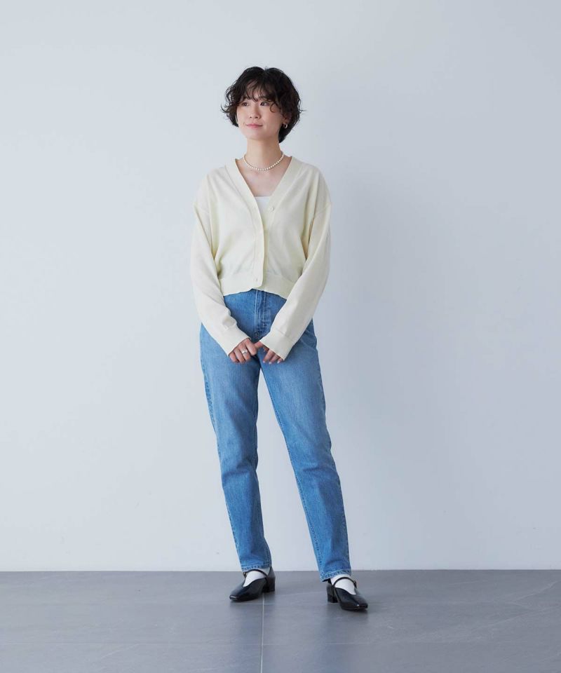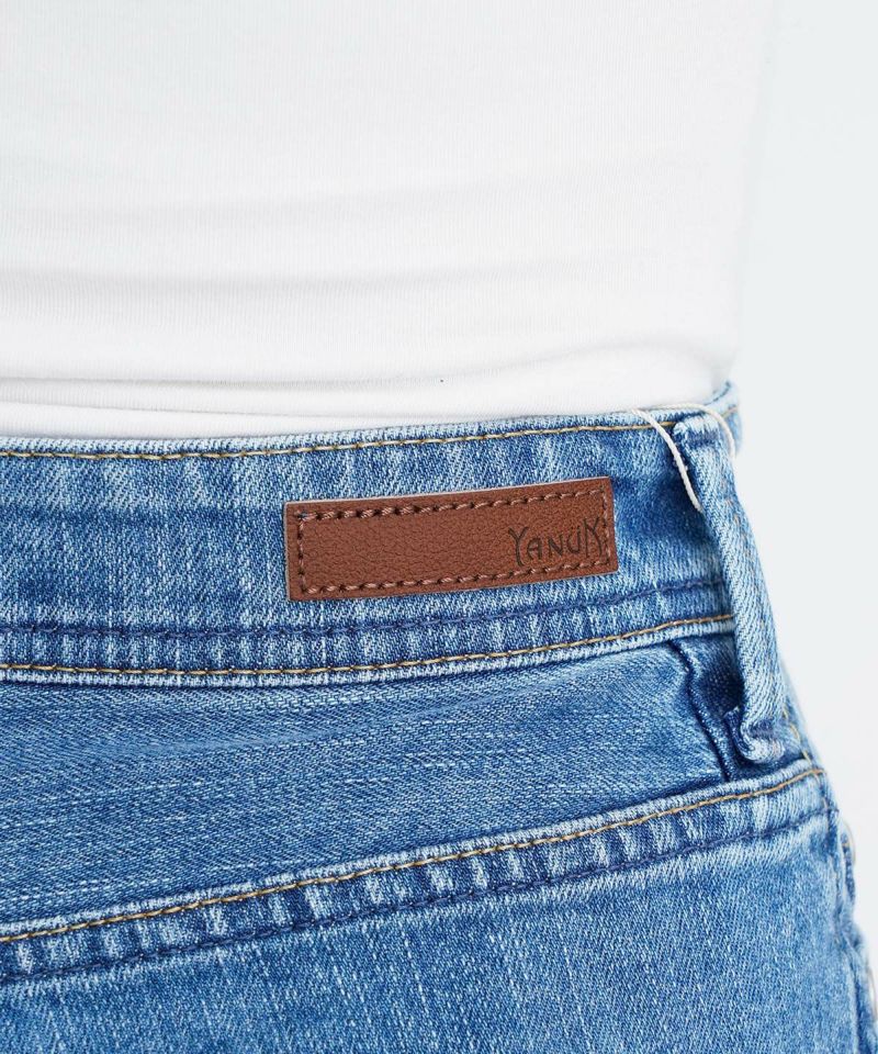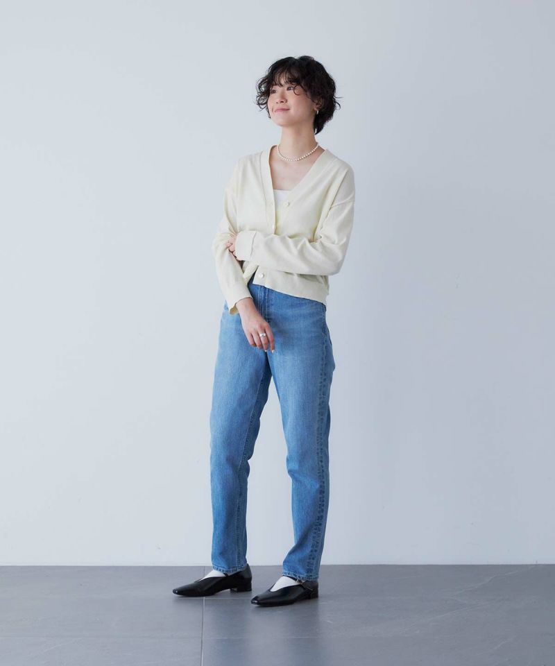 YANUKでも人気の通年通して履きやすい中淡色カラーです。スカッとして女性らしい色味ですが、古着のようなマイルドな表情の加工感をつくっています。女性らしいスタイルにも合いやすく、きれいなデニムの印象でありながら、奥行きのある表情となっています。きれいに履き馴染んだような、清潔感のある雰囲気の加工感に仕上がっています。