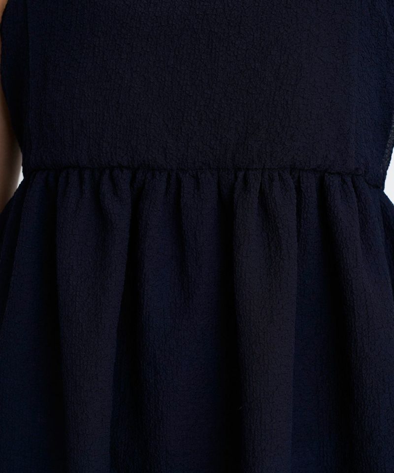 太さ違いの糸を使用し、収縮差を利用することで凹凸を表現しており、コーデの主役級になりやすい生地です。トレンド感ある立体的な表面感とほど良いシアー感のミックスが、甘すぎない大人のシアーとなっています。
