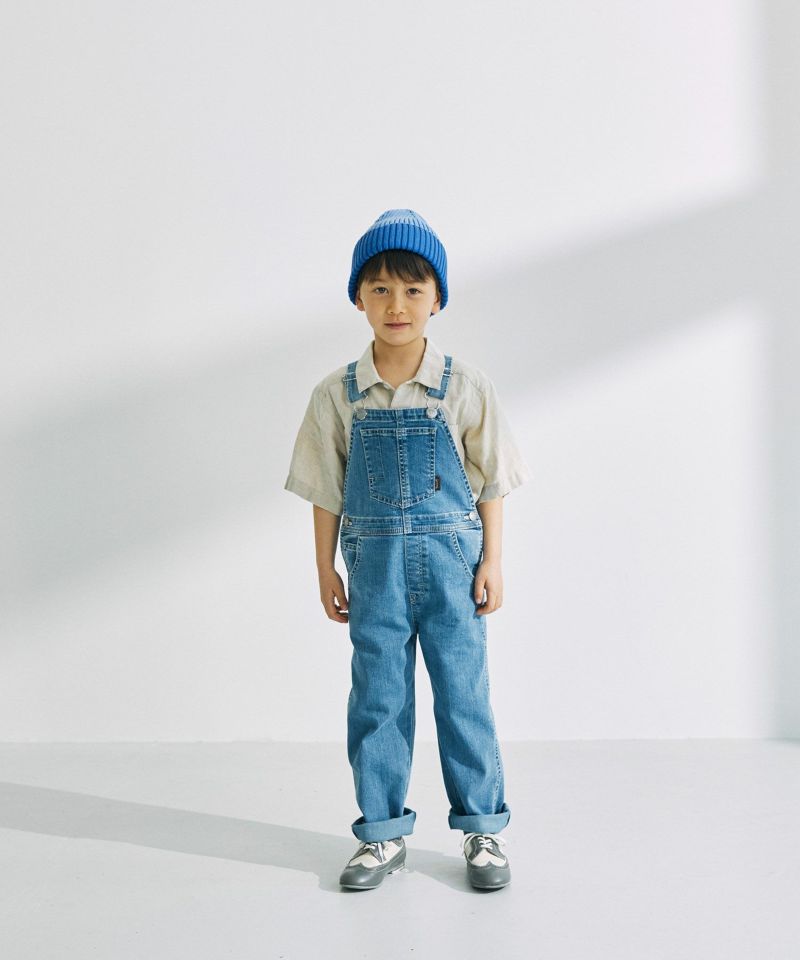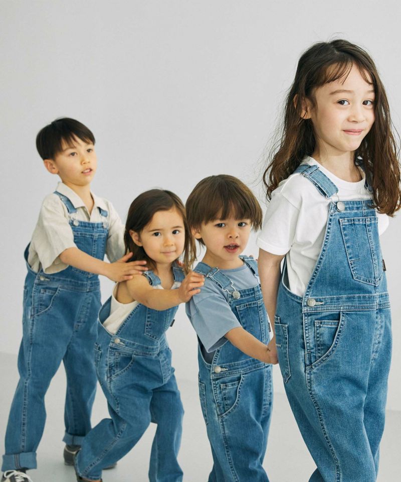 YANUK KIDSが新登場。本格的な見え方にこだわりながら、YANUKのアイデンティティを落としこんだデザインに仕上げました。ジーンズの顔であるバックポケットの刺繍は、YANUKジーンズと同様、16個のY刺繍を施しました。また、6ポケットの採用・前立てステッチなど、細部までYANUKジーンズのディテールを採用し、大人ジーンズとキッズオーバーオールを着て、かわいいリンクになるようにデザインしました。