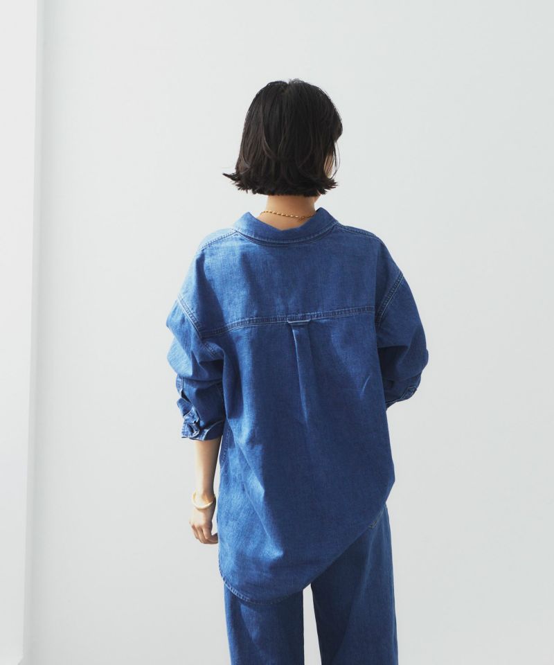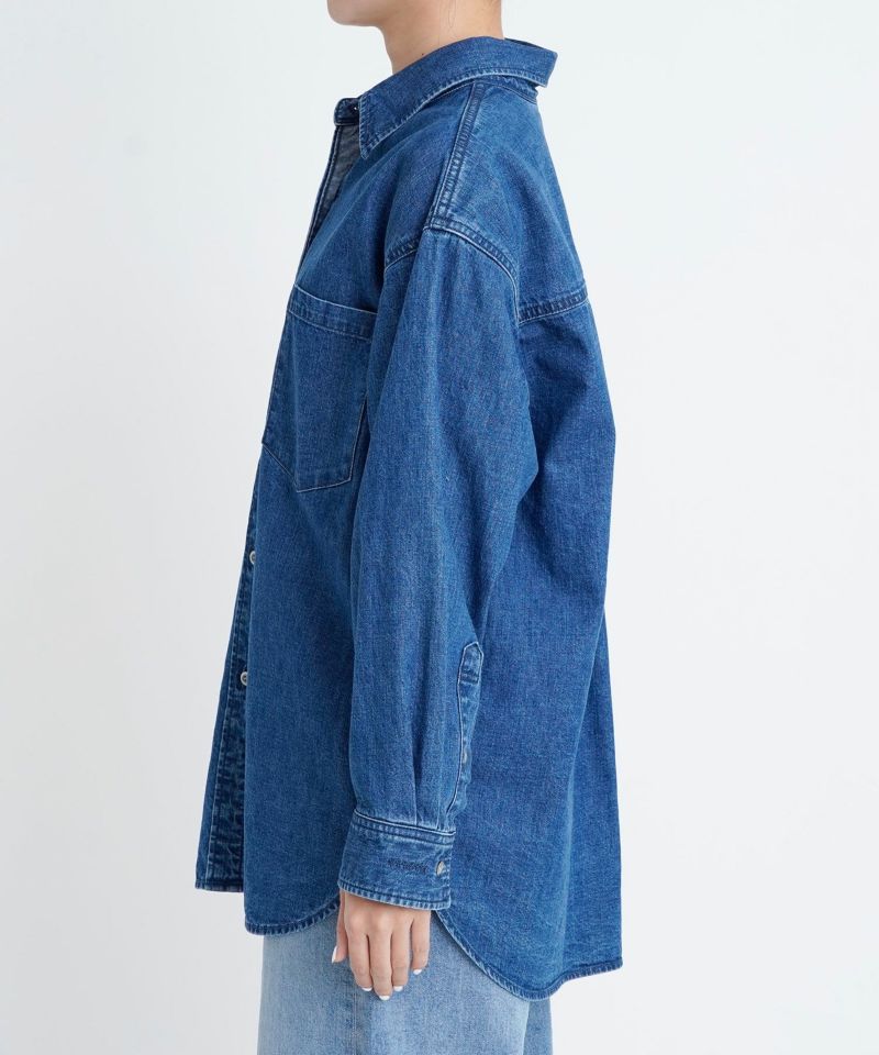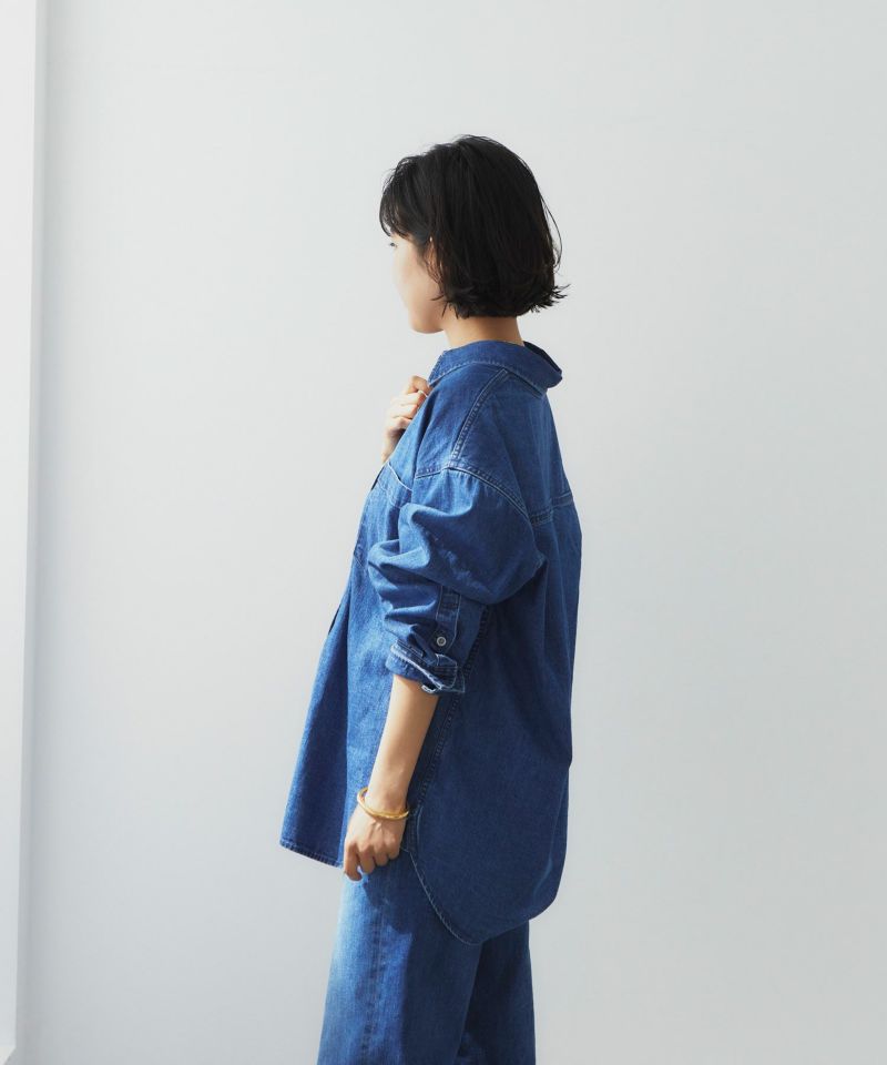 シルエットは、オーバーサイズのボックスシルエット。ラフに仕上がる大きめのシルエットがこなれた印象に、丈が長めでヒップまで隠れるので、体型カバーができます。程よいワークテイストで、さらっと羽織るとカジュアルな大人の着こなしに。使いやすいシンプルなシャツデザインは、ロングシーズン活躍してくれる定番アイテムです。