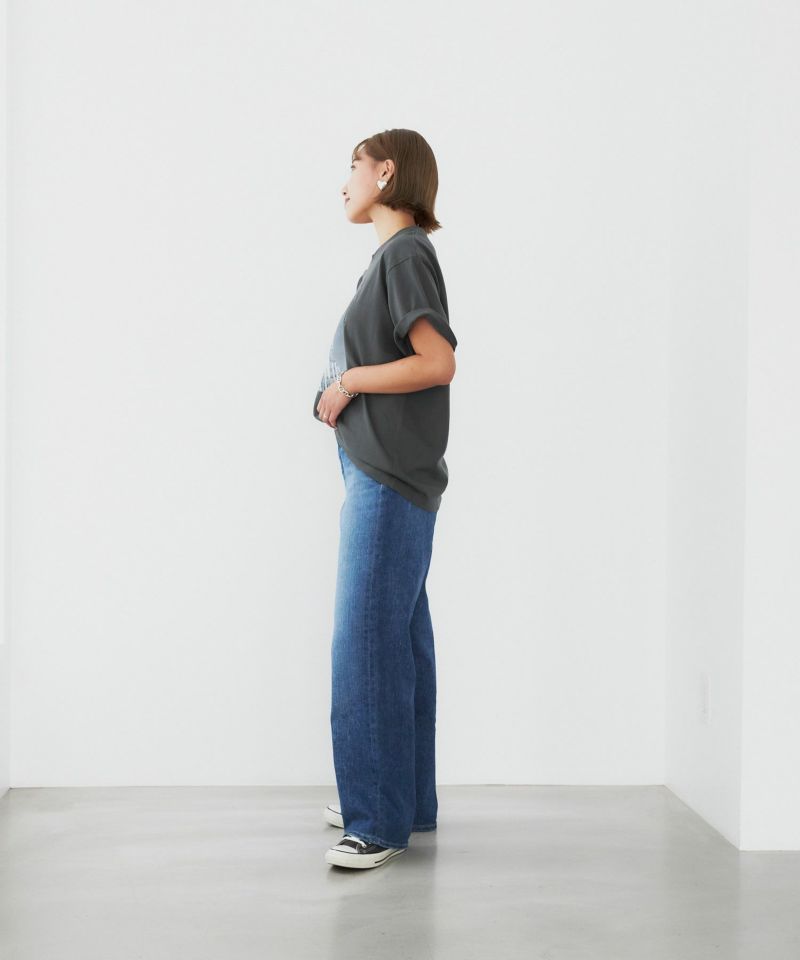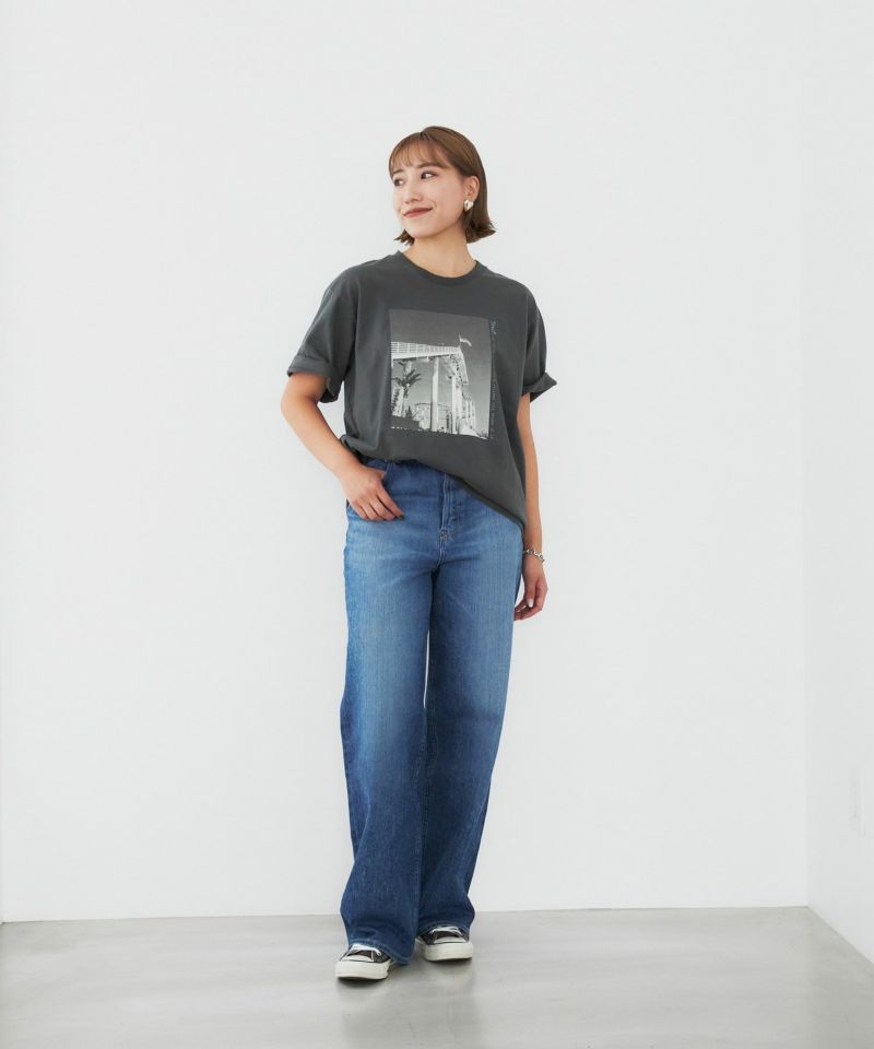 L.A.発祥のデニムブランド“YANUK”。そのL.A.で撮影された遊園地がモチーフです。L.A.のムードがブランドのアイデンティティとして表現されています。シルエットは、オーバーサイズのボックスシルエット、古着のようなラフなシルエットにこだわりました。丈が長めでお尻まで隠れるので、体型カバーができます。袖も二の腕がカバーでき、折って好みの袖丈に調整ができます。ラフなムードが様になるプリントTです。