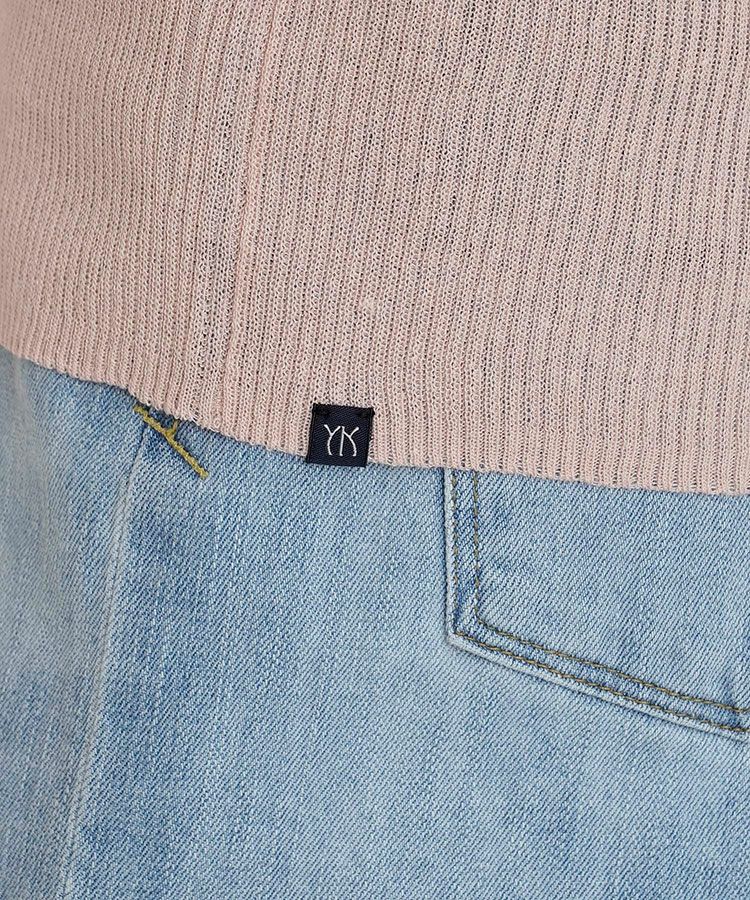 伸縮性があり、清涼感が特徴のリブニットです。伸縮性が出るようハイゲージで繊細に編み立てています。レーヨンの滑らかさと麻の張り感、シャリ味を合わせもった素材です。体にフィットするシルエットですが、肌へのはりつき感がなく清涼感にこだわりました。ご家庭でネットに入れて手洗いでお洗濯が可能です。