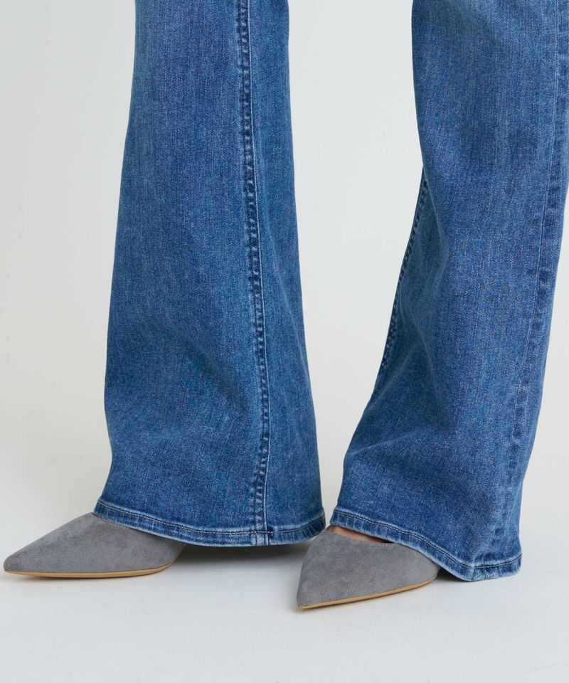 穿きやすさを追求し、脚がきれいに見える美しいバランスのブーツカットです。膝のしぼりをなだらかにし、裾巾も広すぎない絶妙なフレアシルエットで、脚がキレイに見えます。膝位置を高めに設定し、高めの位置からなだらかにフレアが始まるので、脚が長く見える効果も期待できます。後ろ姿も美しく見えるよう、後ろヨークとポケットのバランスを調整しています。ハイウエストなので、トップスインして着ていただくのもおすすめです。