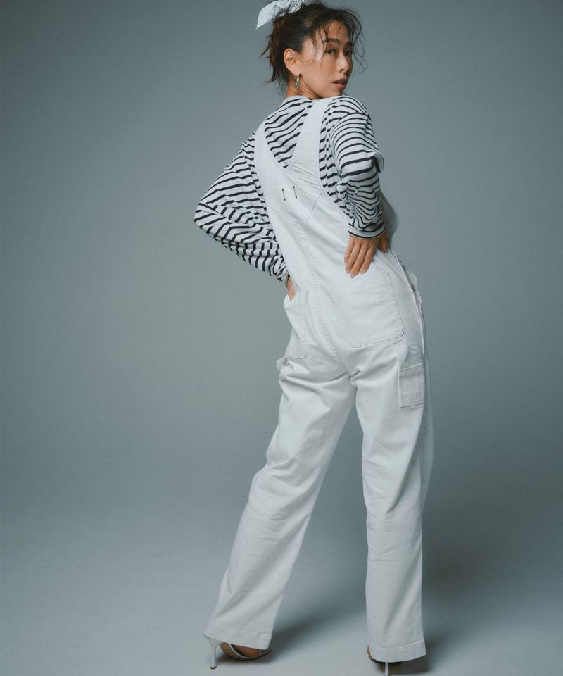 すっきりと着られる洗練されたシルエットと、本格的なワークディテールを兼ね備えたオーバーオール。作業着として誕生したオーバーオールは、カジュアルな印象が強いですが、シルエット・素材・ディテールと細部までこだわり、カジュアルながらもクリーンで都会的に仕上げました。シルエットは、脚のラインを拾わないほどよいストレートで、スタイリッシュに着こなしやすくなっています。また、ウエスト位置や後ろのポケット位置にもこだわることで、脚長効果も狙える1枚に。後ろのポケットには、YANUKのアイデンティティであるYY刺繍が施されています。太めに設定された裾のステッチがコーディネートにアクセントを与えてくれ、ステッチ分太めに折り返しても、オーバーオールならではの着こなしで可愛くオススメです。