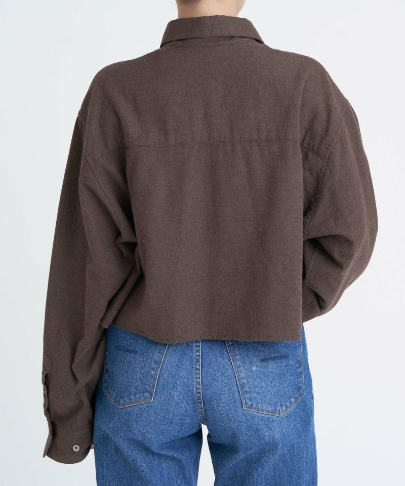 ふんわり柔らかな肌ざわりが特徴のクロップドシャツ。ゆったりとしたオーバーサイズがリラックスした印象を演出。短めの着丈でボトムとのバランスが取りやすく、1枚でこなれ感が出せるアイテムです。また羽織りとしても使えるので、着こなしの幅も広がります。