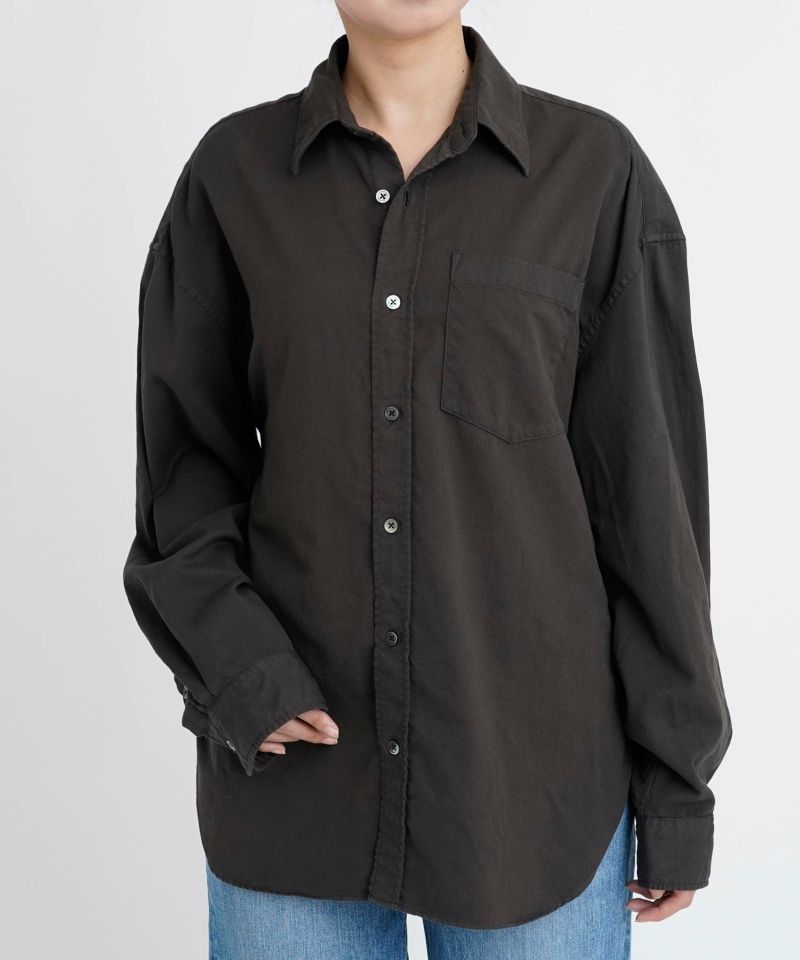 定番的に使いやすい、ゆったりシルエットのオーバーサイズシャツです。メンズも着られるサイズ感で、ユニセックスとしてもオススメです。ゆったりシルエットですが、袖のボリュームなどを控えることで、ルーズになりすぎない、絶妙な抜け感のあるシャツに仕上げています。ゆとりのあるサイズ感が、身体のラインをひろいにくく、様々な体型の方にオススメです。また、ヒップまでしっかり隠れる着丈のため、腰周りなどもしっかりカバーしてくれます。コーディネートに抜け感を出しつつも、しっかり体型をカバーしてくれる万能アイテムです。