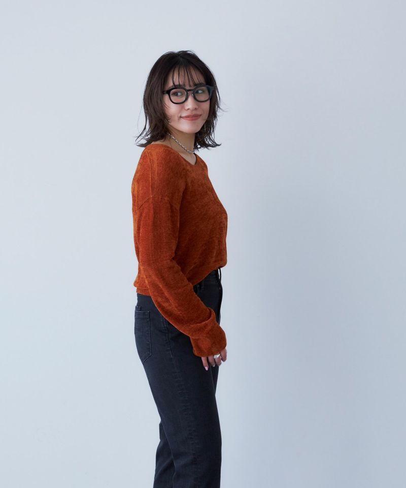 ふんわりとした肌触りと、やさしい表情が魅力のモールニットトップス。身体に沿いすぎないほどよいゆとり感のフォルムと、広めのネックラインが抜け感を演出し、1枚でこなれ感が決まるデイリーに頼れる大人のカジュアルニットです。袖口と裾に太めのリブを採用することで、ミニマムなデザインの中にもアクセントが効いた1枚です。