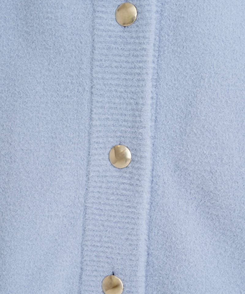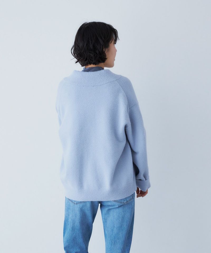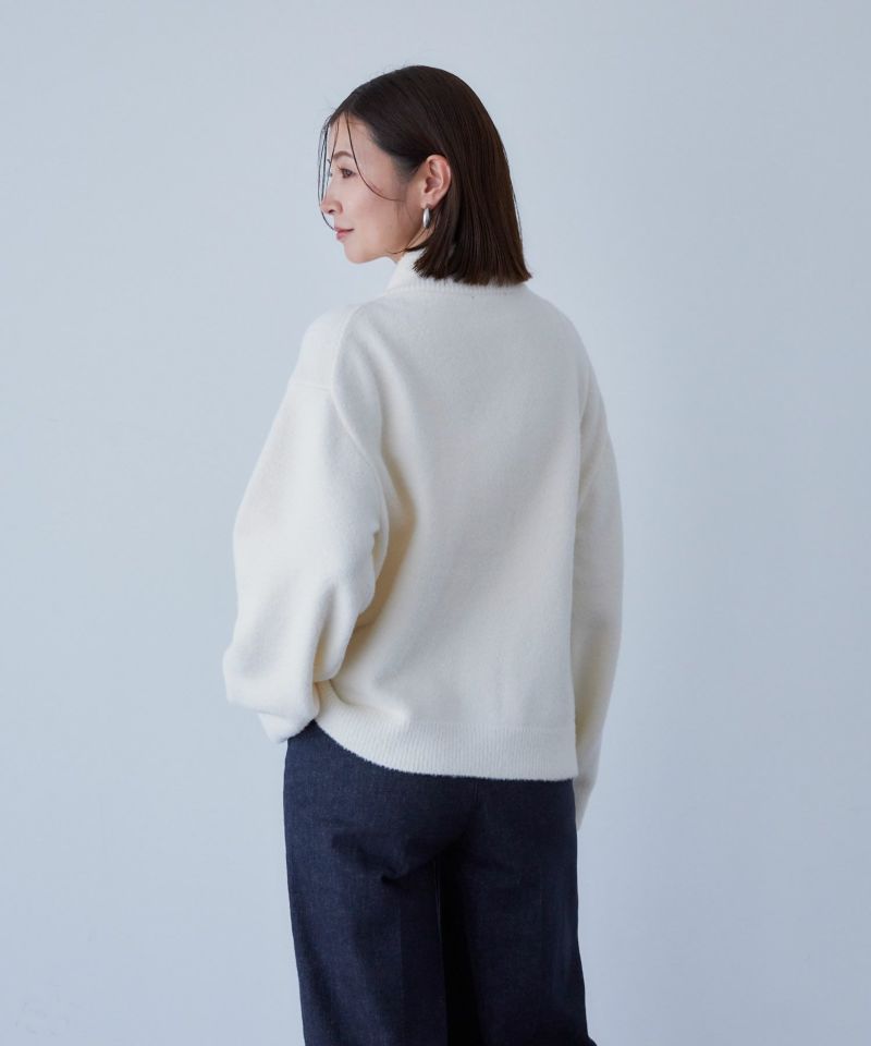 ふんわりとした表情でかつしっかりした肉厚のニットで、カーディガンのようにもアウターのようにも着まわせるアイテムです。丸みをおびたようなフォルムで、中にも着重ねやすいようなゆったりしたシルエットになっています。表情がふんわりしていますが、金属のボタンが全体の印象を引き締めます。脇にはポケットも付いているのでアウターとして着るときにも重宝します。肌寒くなってきた日に丁度いいですし、真冬にもコートの中に着用できる着回しのいいニットカーディガンです。