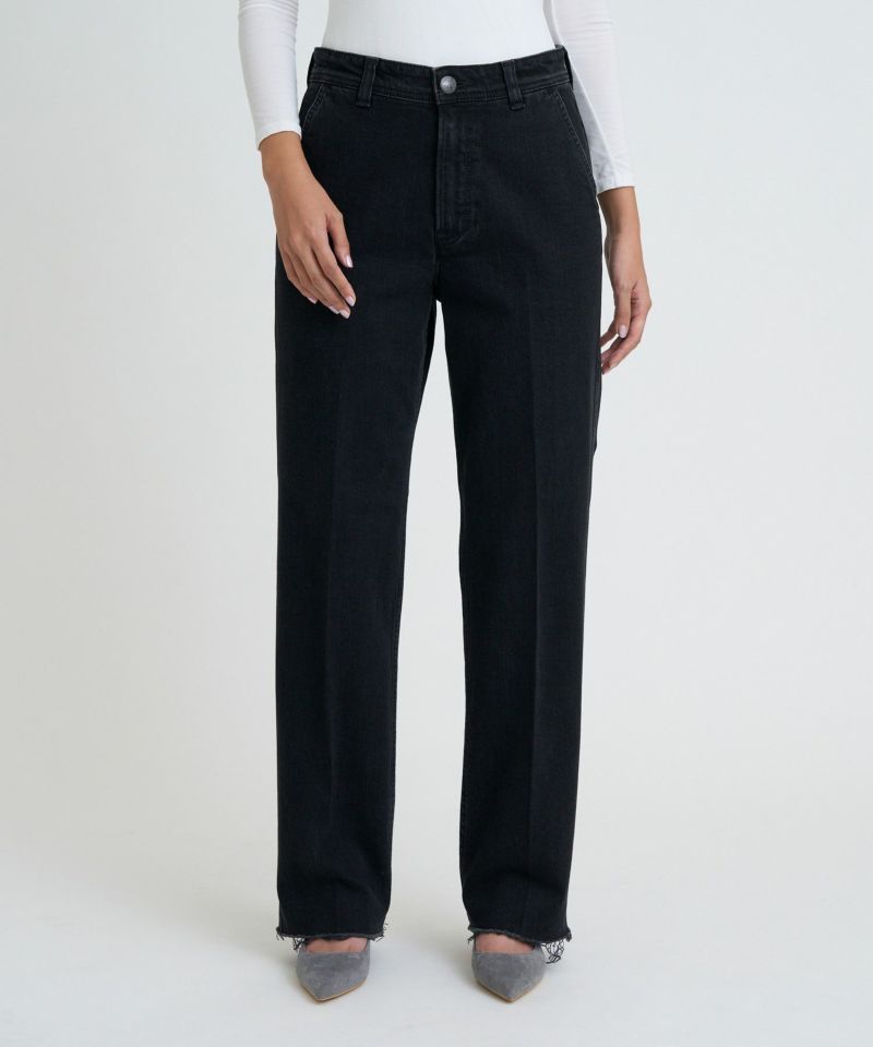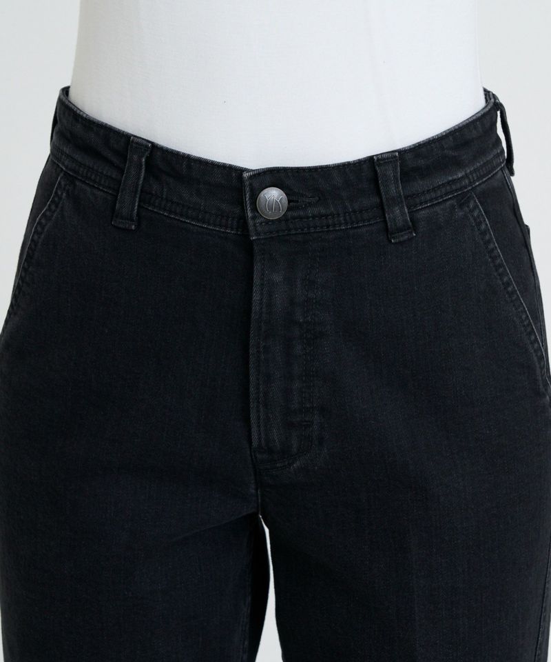 ホールド感のあるストレッチ性と、肉感を拾いすぎないハリ感が特徴のブラックデニム。スタイルを美しくキープしてくれながらも、締め付けすぎず動きやすい穿き心地抜群の生地です。