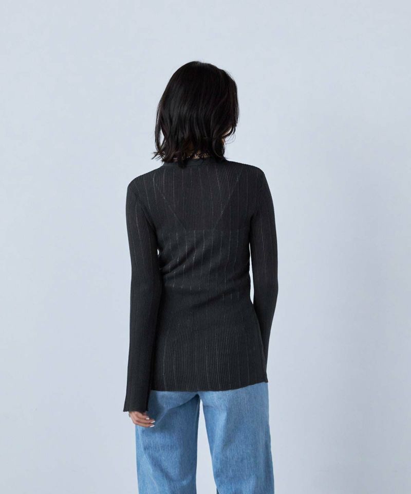伸縮性があり、清涼感が特徴のリブニットです。伸縮性が出るようハイゲージで繊細に編み立てています。レーヨンの滑らかさと麻の張り感、シャリ味を合わせもった素材です。体にフィットするシルエットですが、肌へのはりつき感がなく清涼感にこだわりました。ご家庭でネットに入れて手洗いでお洗濯が可能です。