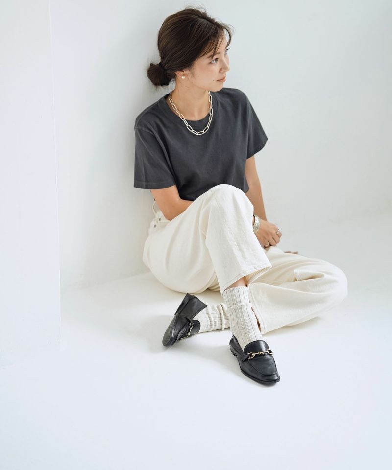 コーマ糸をたっぷりと使い、稀少なローゲージのリブ機でゆっくりと編みあげました。