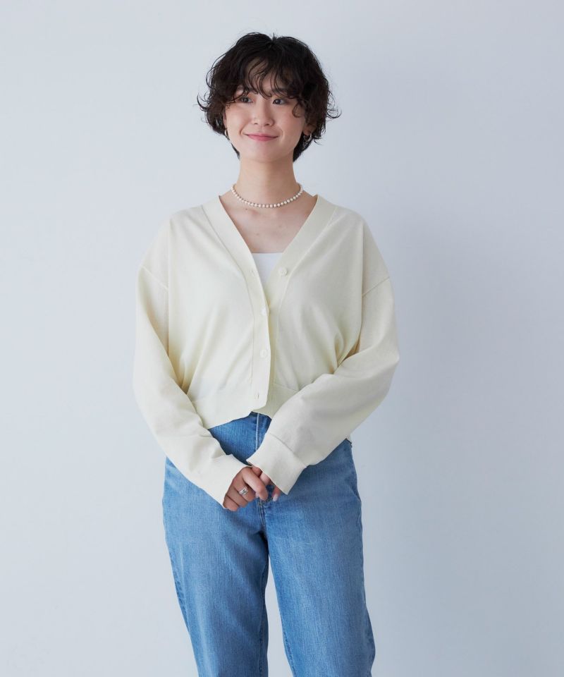 軽やかに羽織れるニットカーディガン。さらりとした肌触りが特徴で冷え込みが気になる朝晩や、室内の冷え対策、秋の日差しよけなど様々なシチュエーションで活躍する1枚。ほどよいゆとり感のシルエットと短めに設定された丈感で、スタイリングのバランスが取りやすいよう仕上げています。